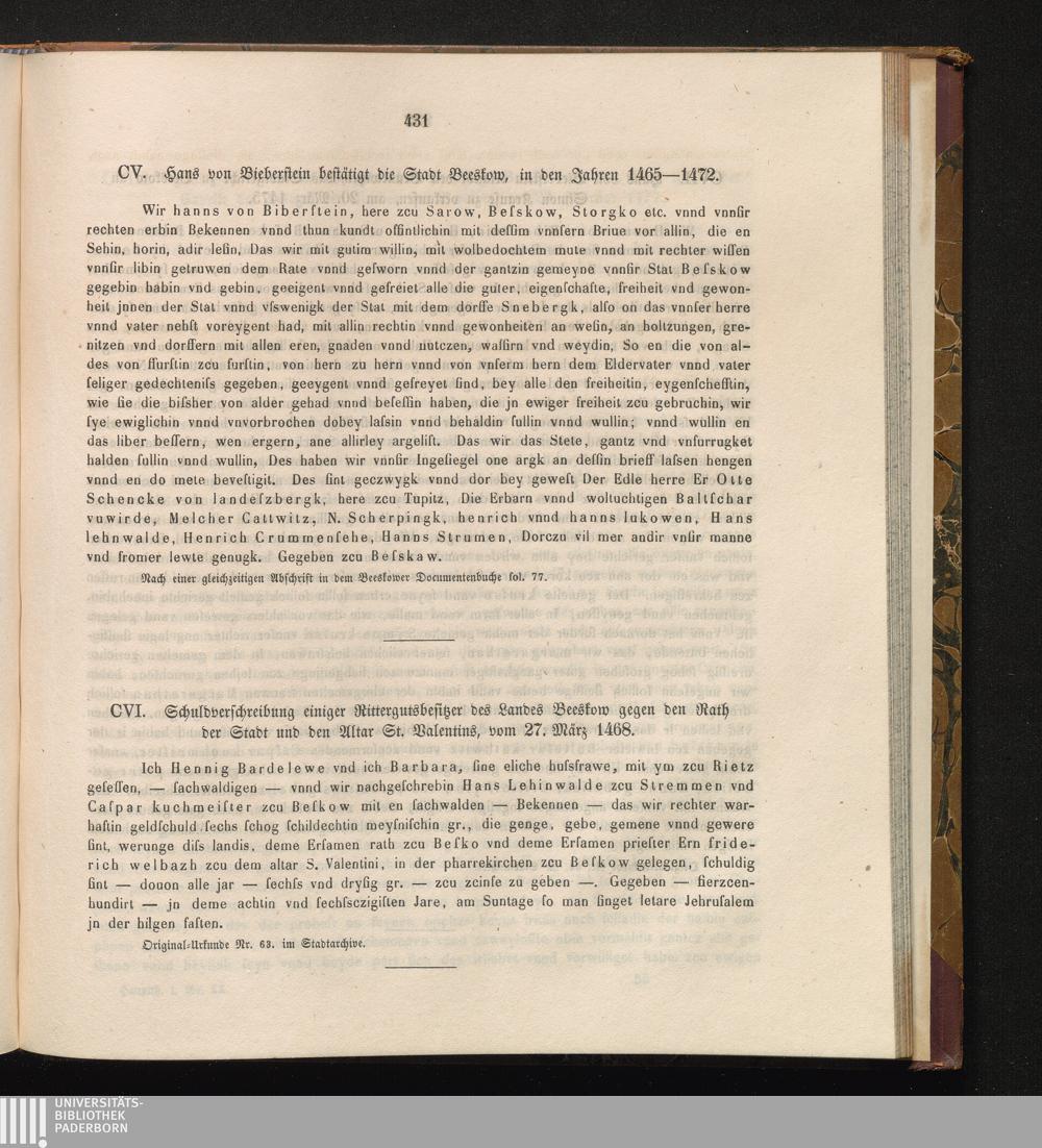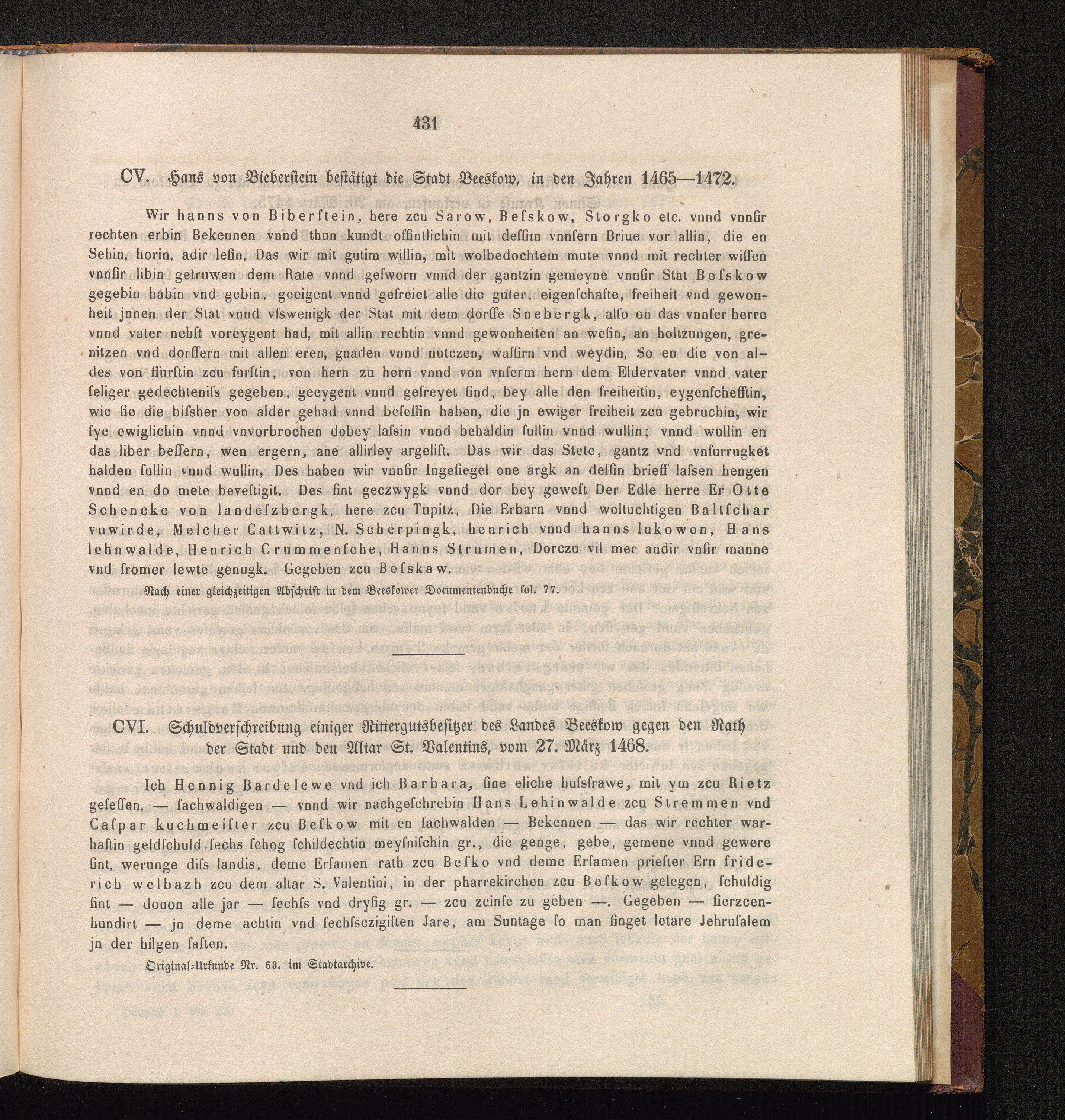 CVI. Schuldverschreibung einiger Rittergutsbesitzer des Landes Beeskow gegen den[...]