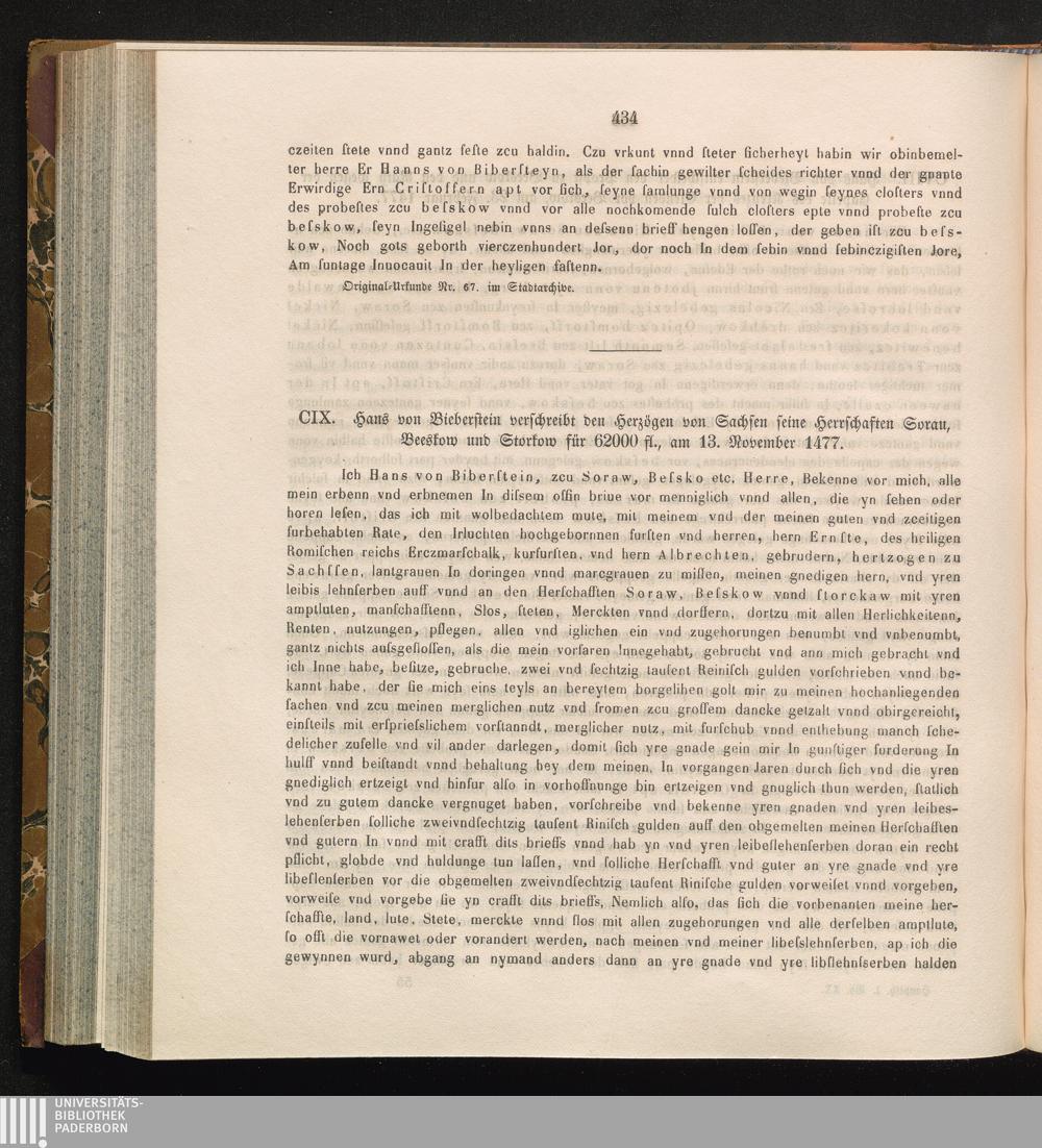 CIX. Hans von Bieberstein verschreibt den Herzögen von Sachsen seine Herrschaften[...]