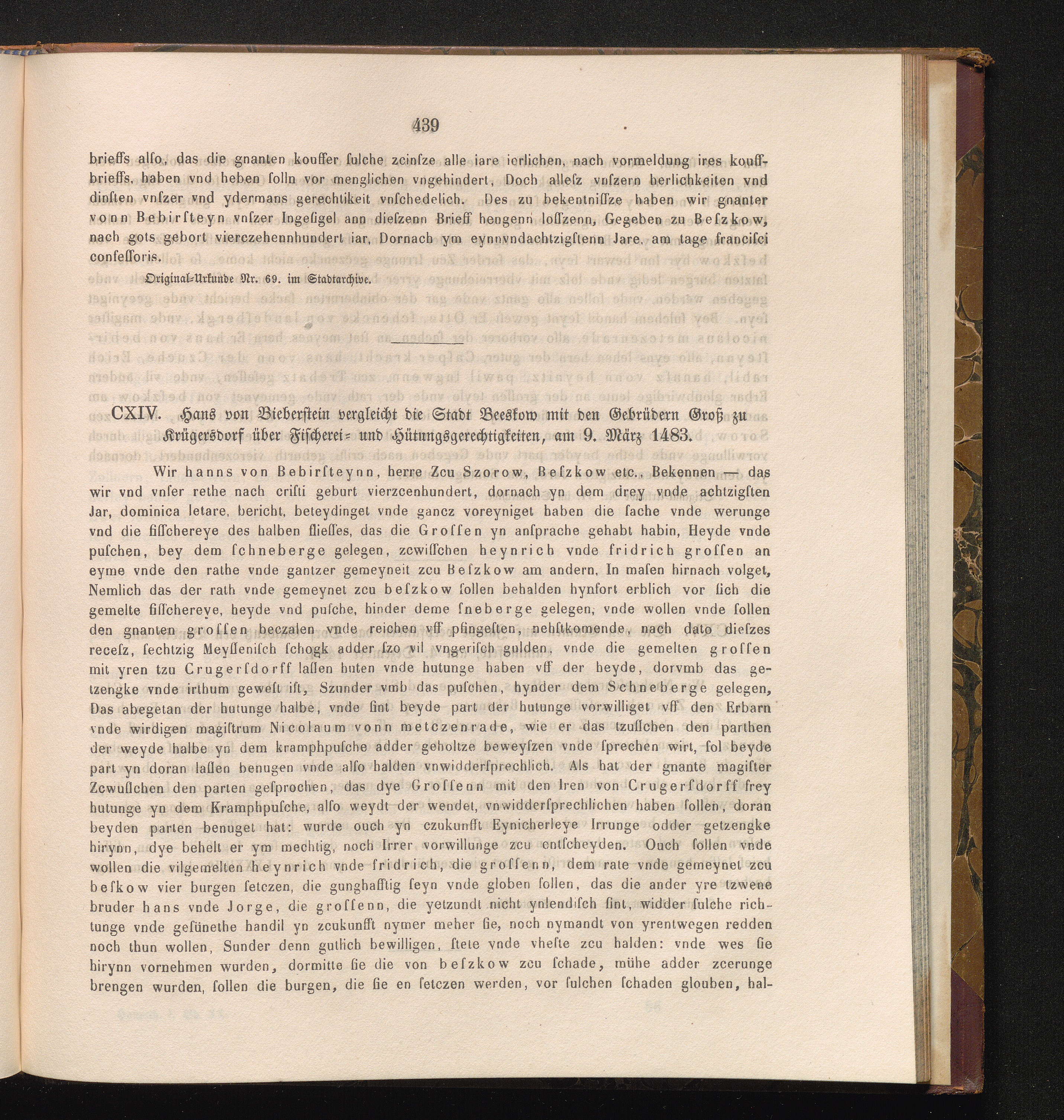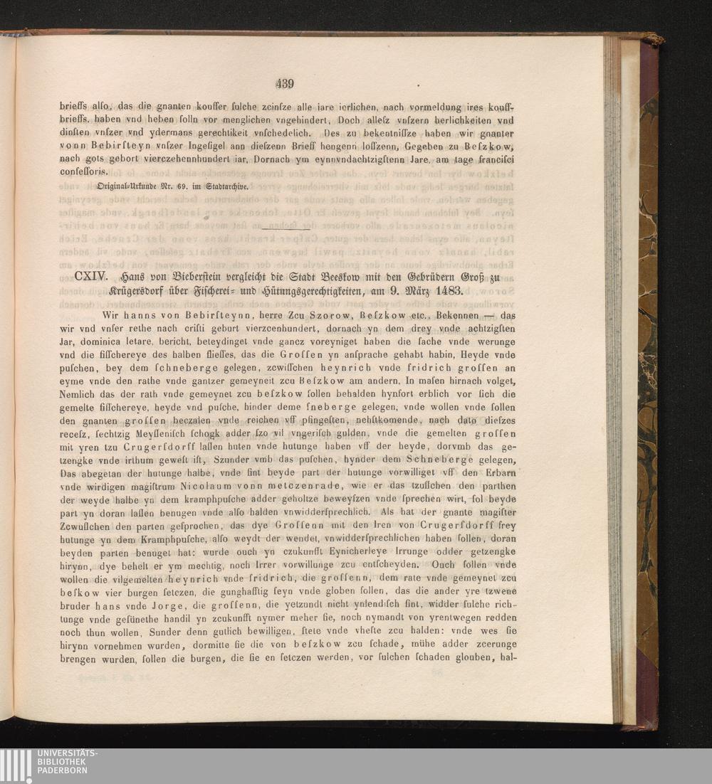 CXIV. Hans von Bieberstein vergleicht die Stadt Beeskow mit den Gebrüdern Groß zu[...]