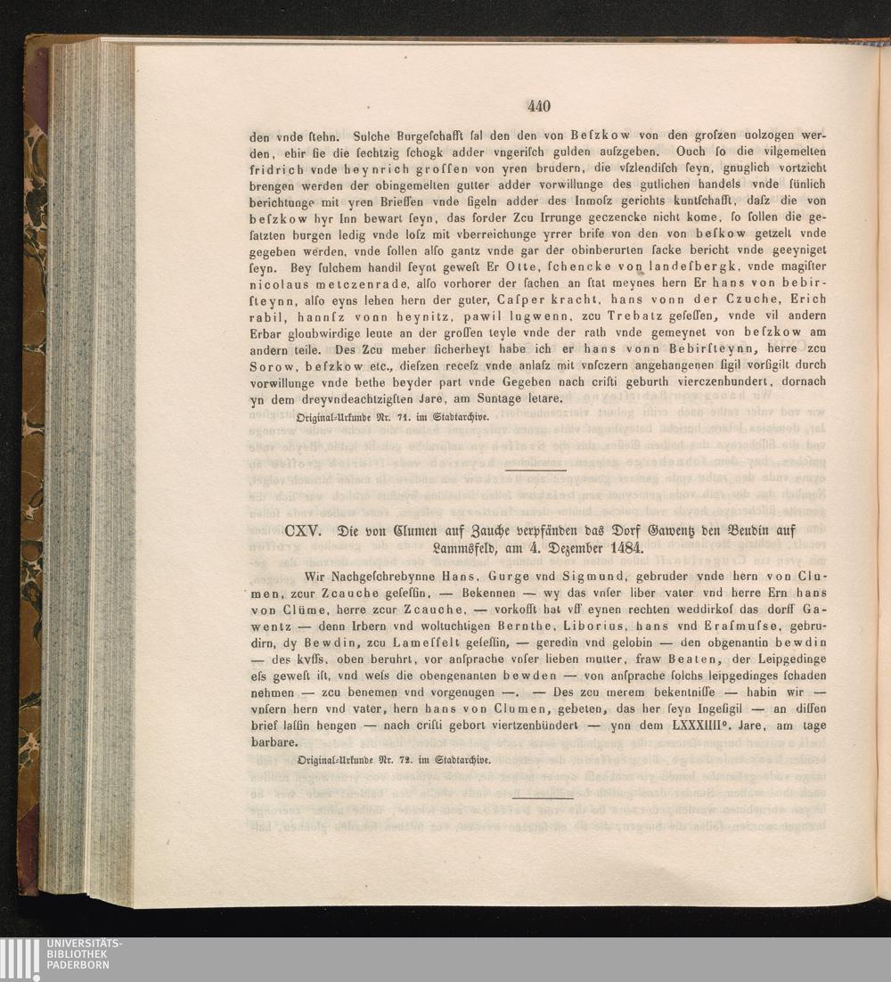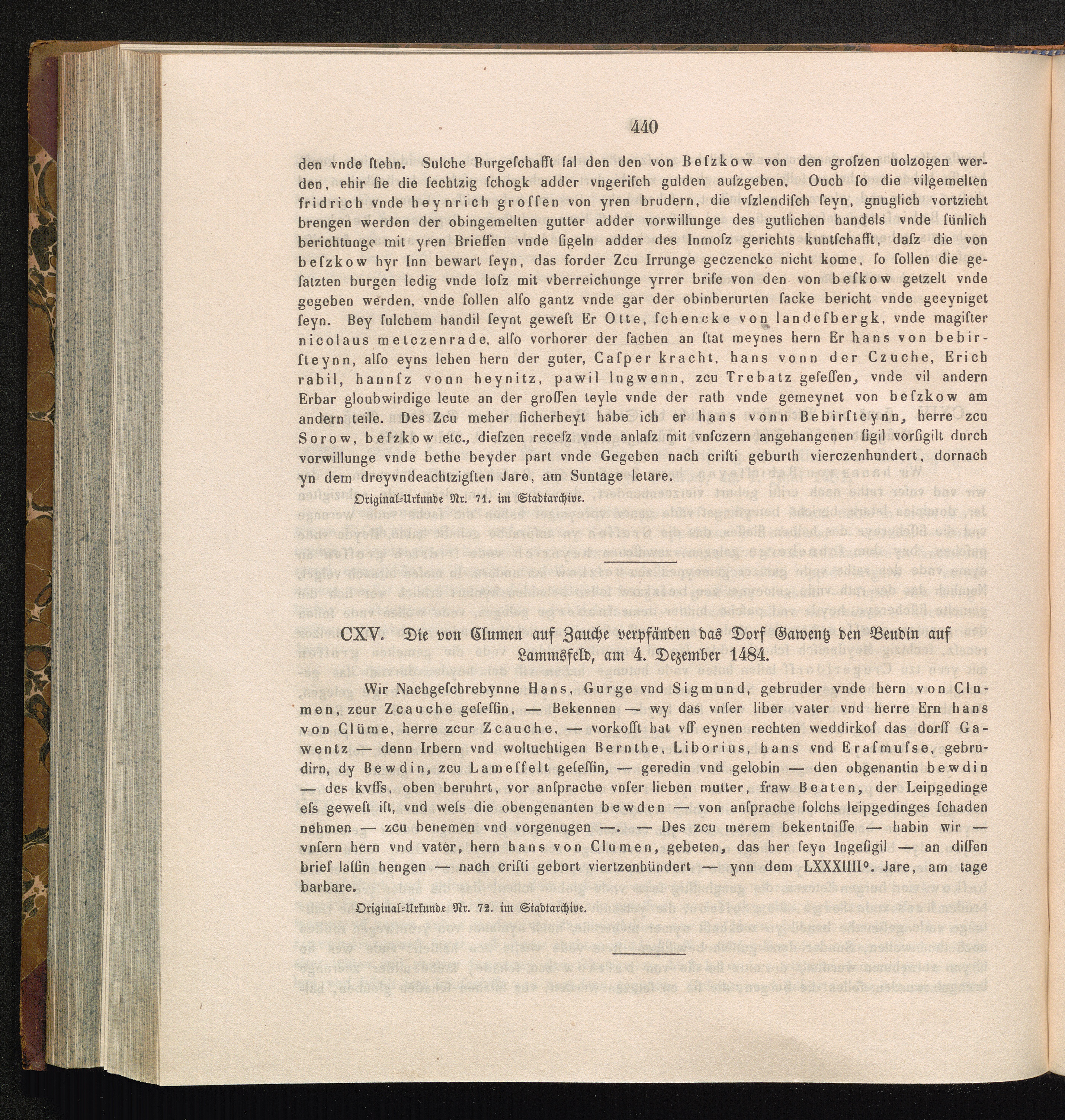 CXV. Die von Clumen auf Zauche verpfänden das Dorf Gawentz den Beudin auf Lammsfeld,[...]