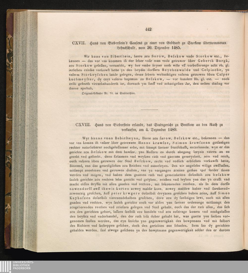CXVIII. Hans von Bieberstein erlaubt, das Stadtgericht zu Beeskow an den Rath zu[...]