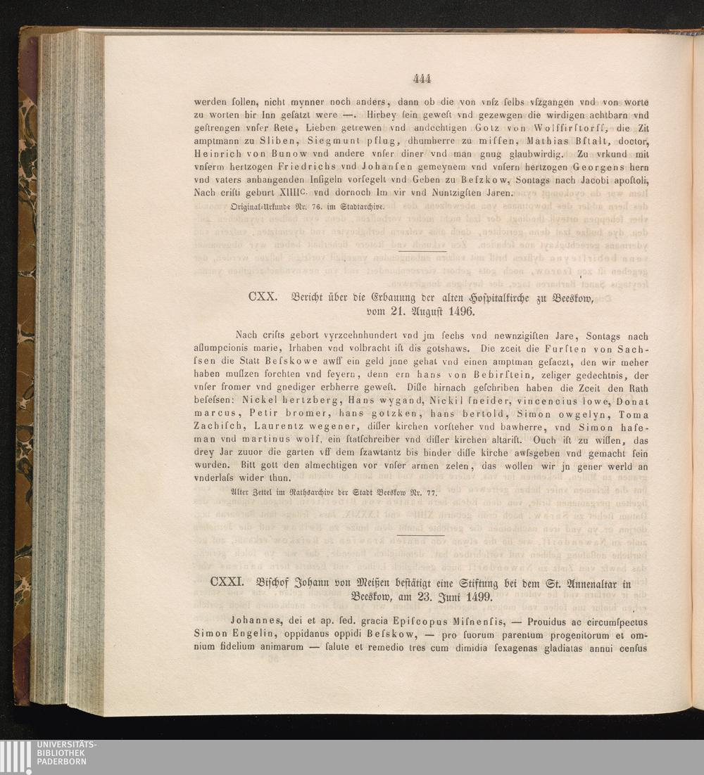 CXXI. Bischof Johann von Meißen bestätigt eine Stiftung bei dem St. Annenaltar in[...]