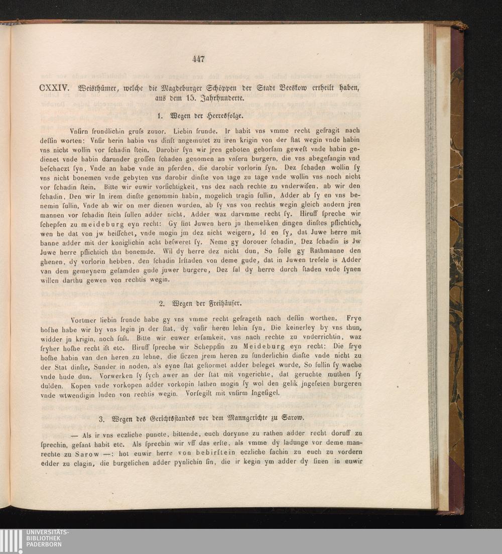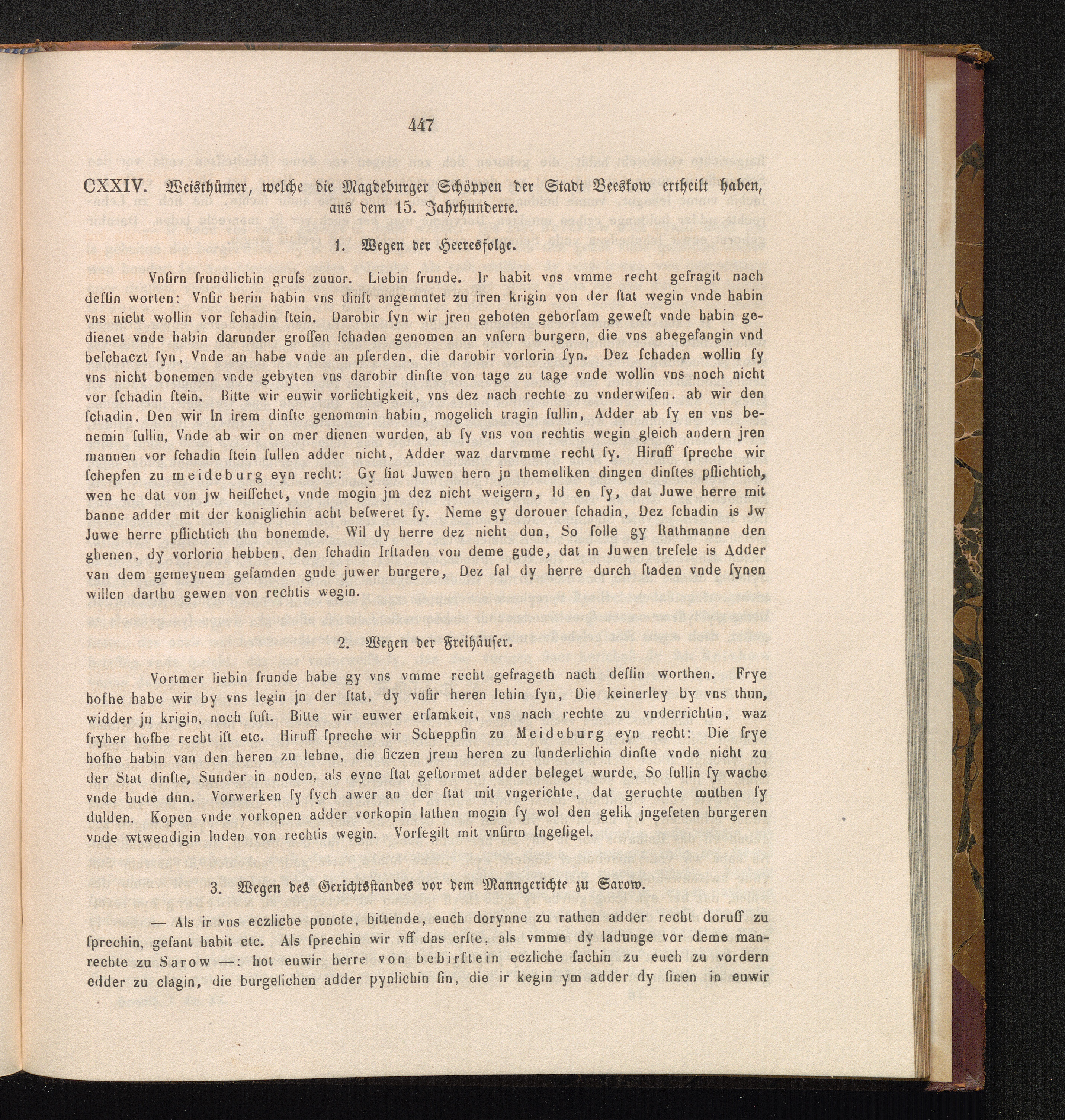 CXXIV. Weisthümer, welche die Magdeburger Schöppen der Stadt Beeskow ertheilt haben,[...]