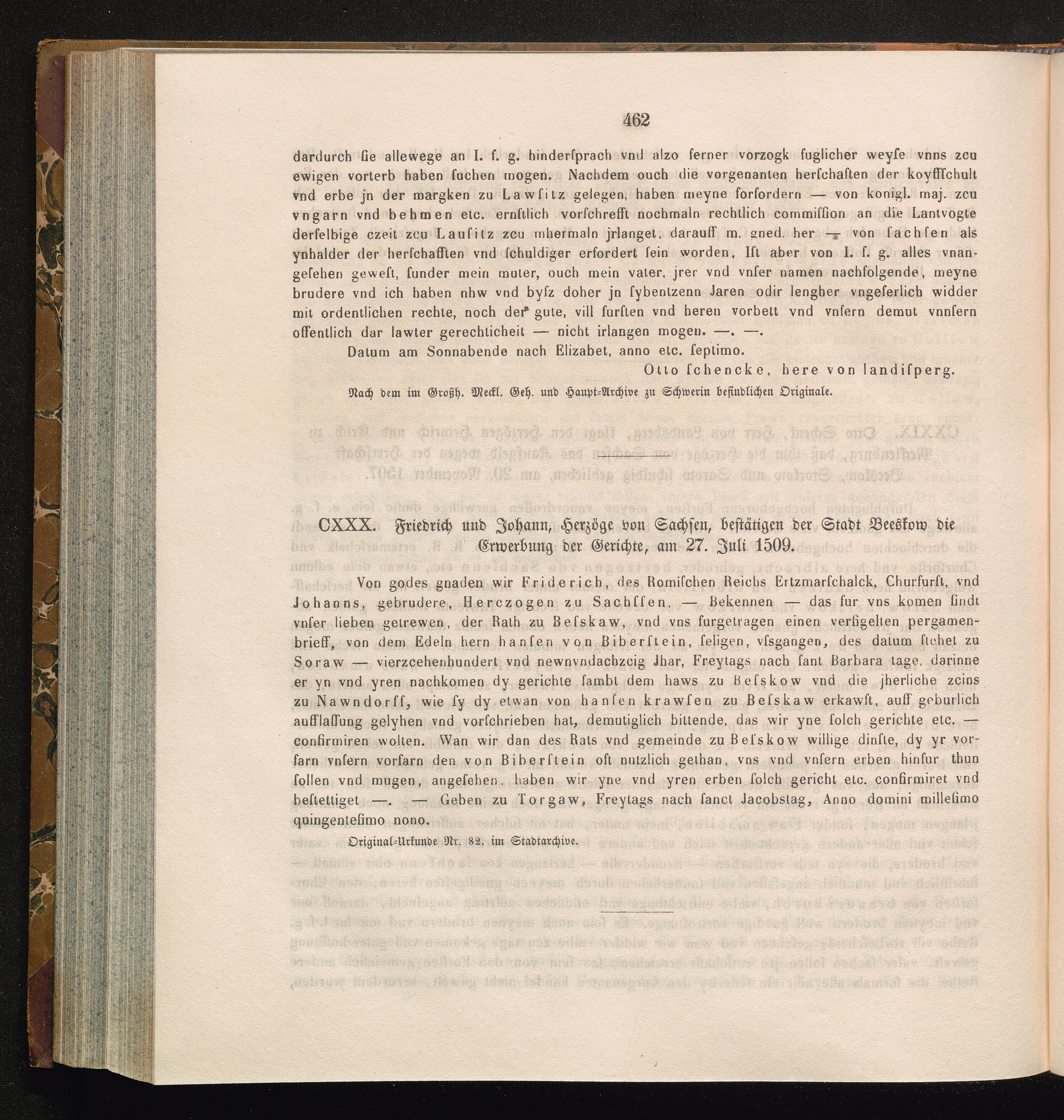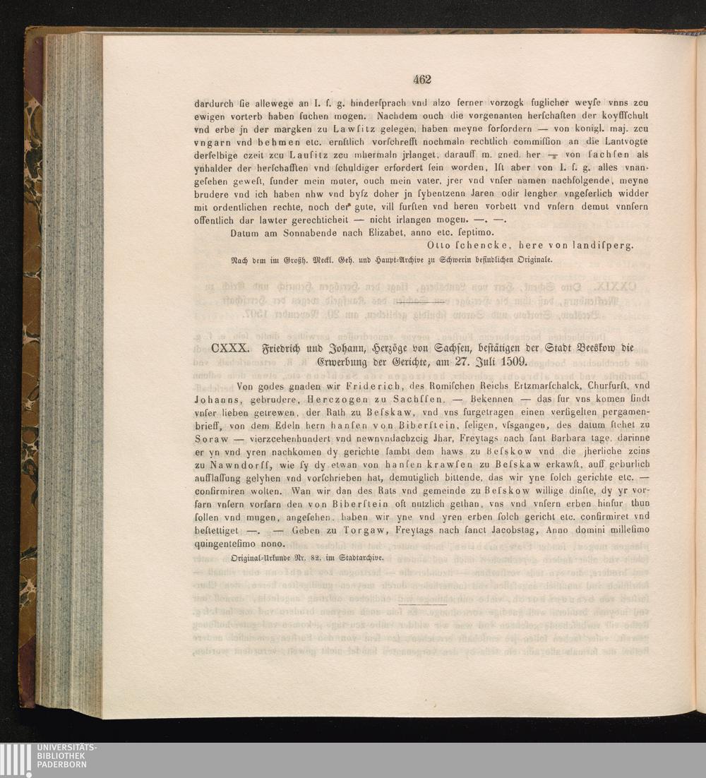CXXX. Friedrich und Johann, Herzöge von Sachsen, bestätigen der Stadt Beeskow die[...]