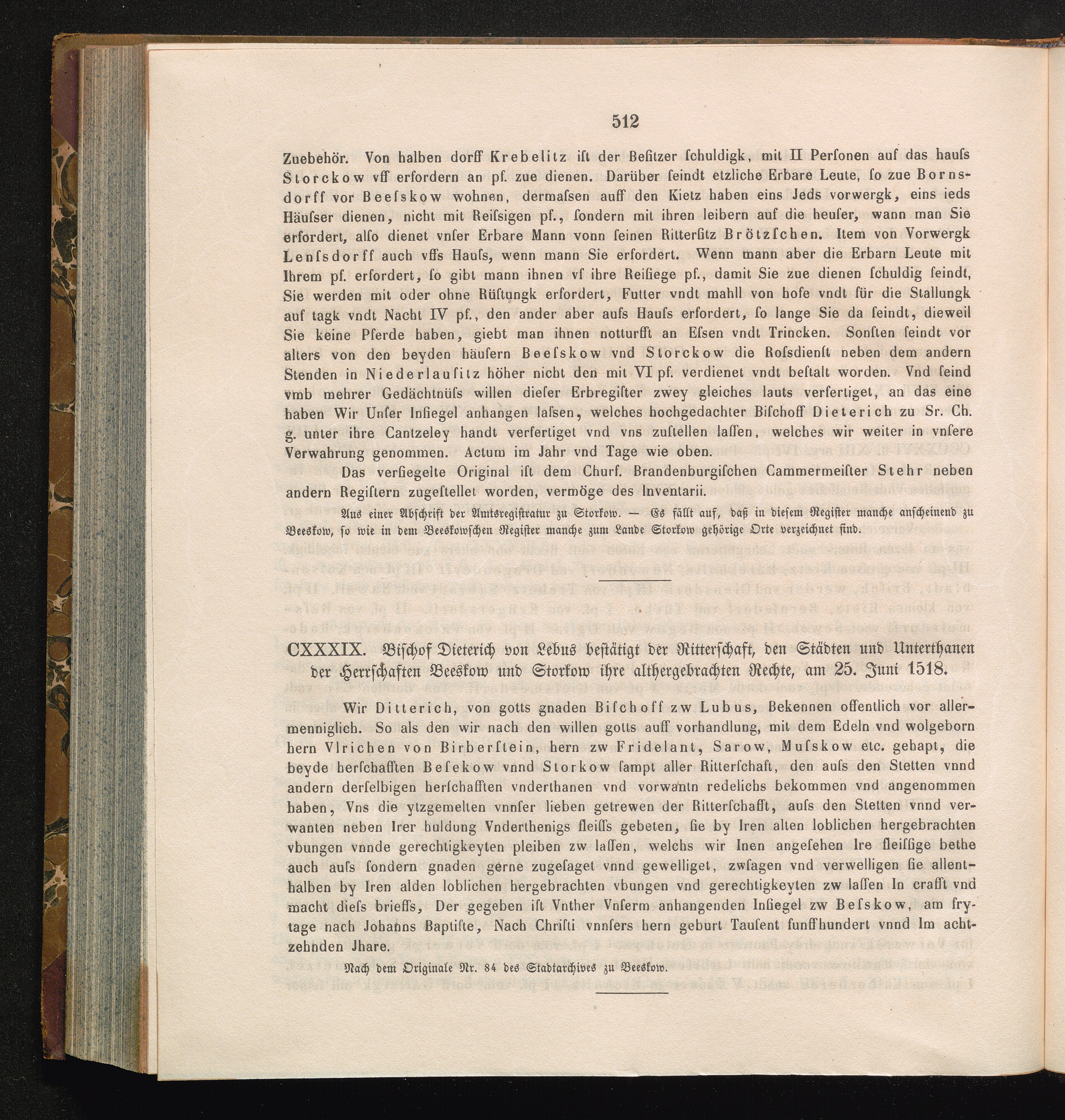 CXXXIX. Bischof Dieterich von Lebus bestätigt der Ritterschaft, den Städten und Unterthanen[...]