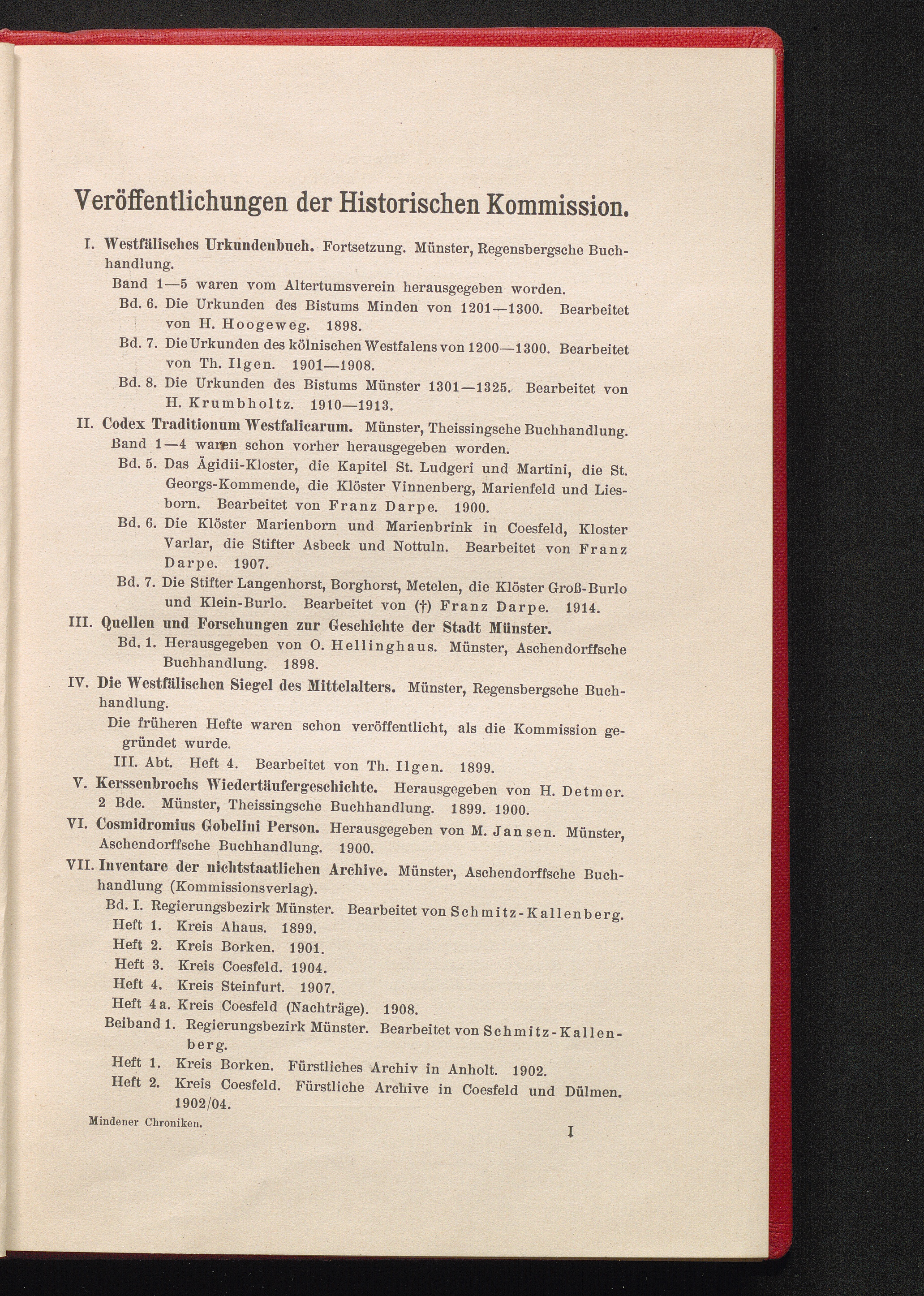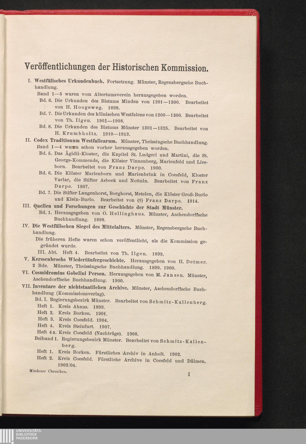 1 (1917) Die Bischofschroniken des Mittelalters (Hermanns v. Lerbeck Catalogus episcoporum Mindensium und seine Ableitungen) / krit. neu hrsg. von Klemens Löffler