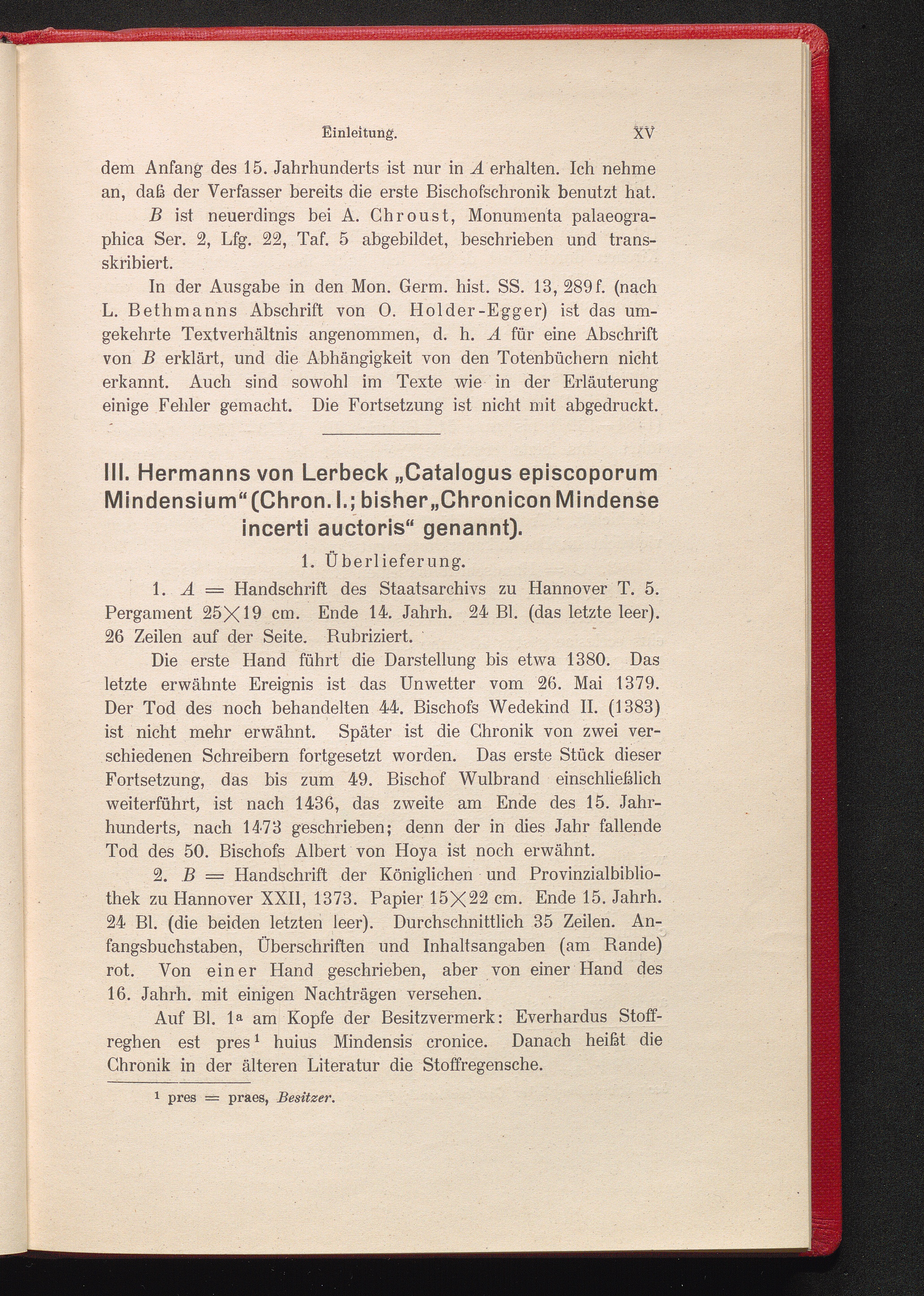 III. Hermanns von Lerbeck ,,Catalogus episcoporum Mindensium" (Chron. I., bisher[...]