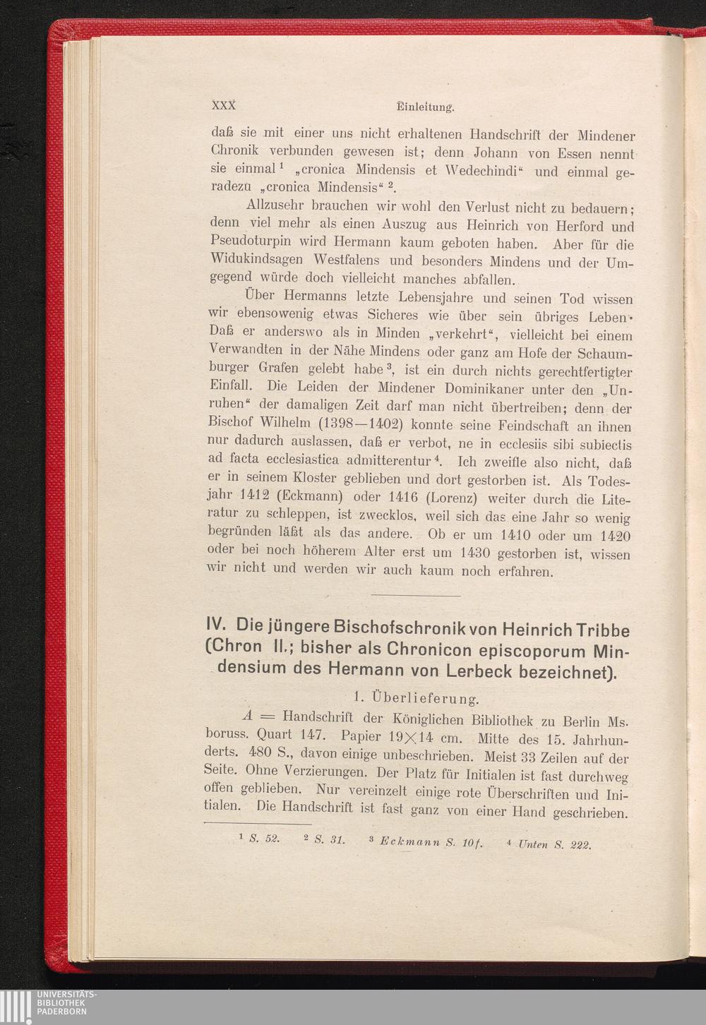 IV. Die jüngere Bischofschronik von Heinrich Tribbe (Chron. II; bisher als "Chronicon[...]