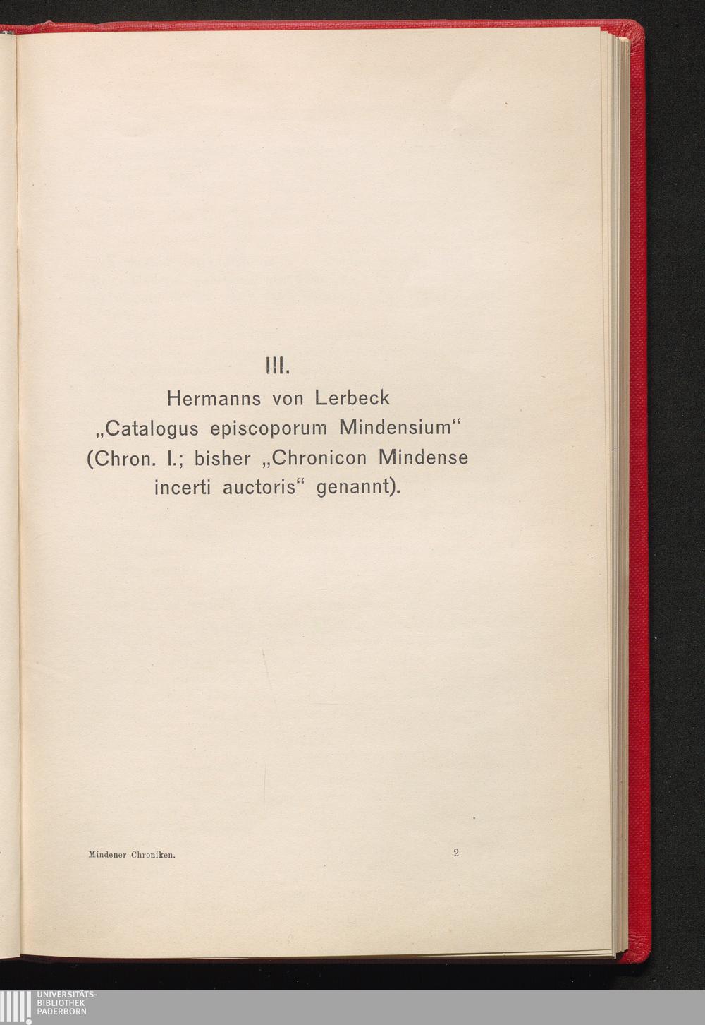 III. Hermanns von Lerbeck "Catalogus episcoporum Mindensium"
