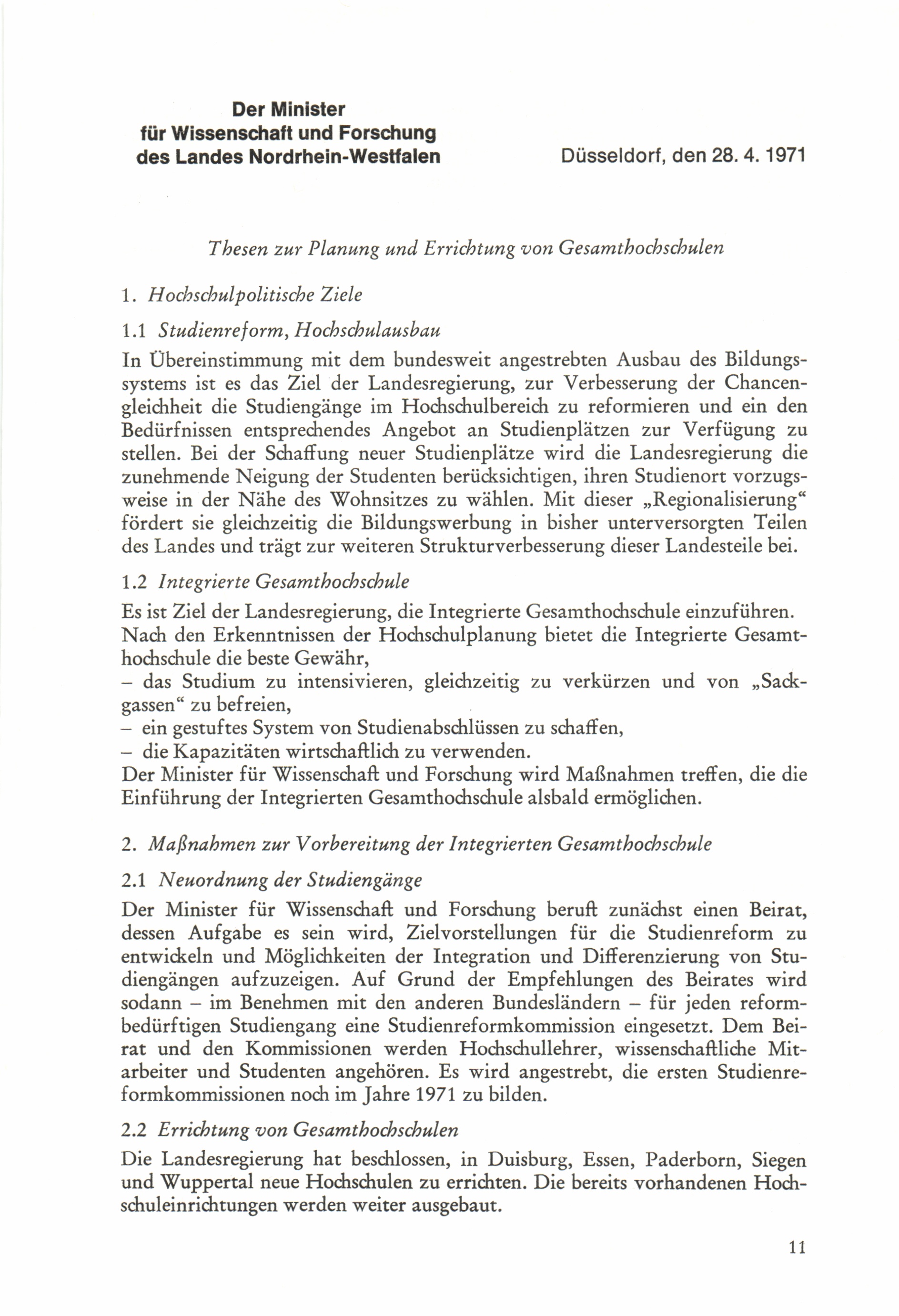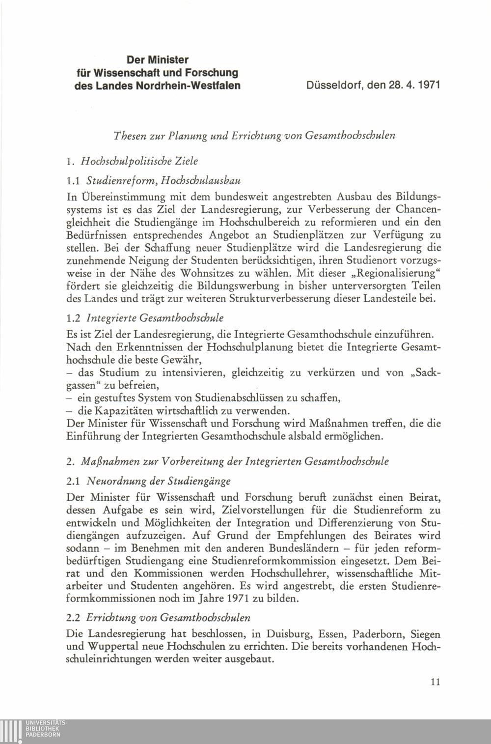 Thesen zur Planung und Errichtung von Gesamthochschulen