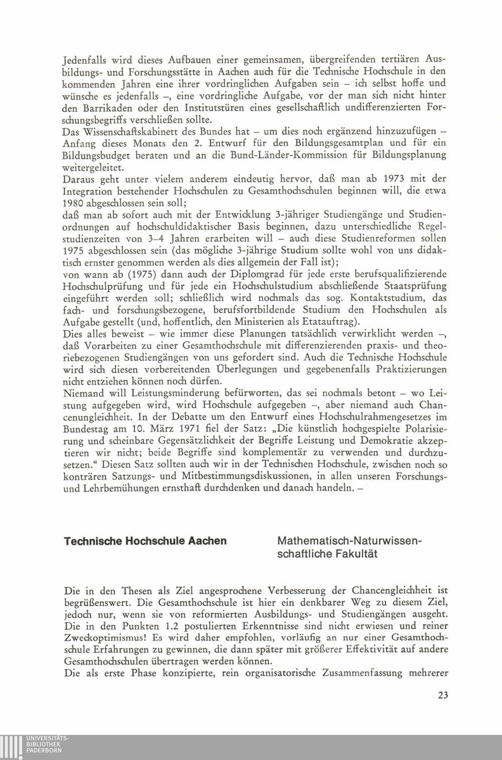 Thesen zur Planung und Errichtung von Gesamthochschulen