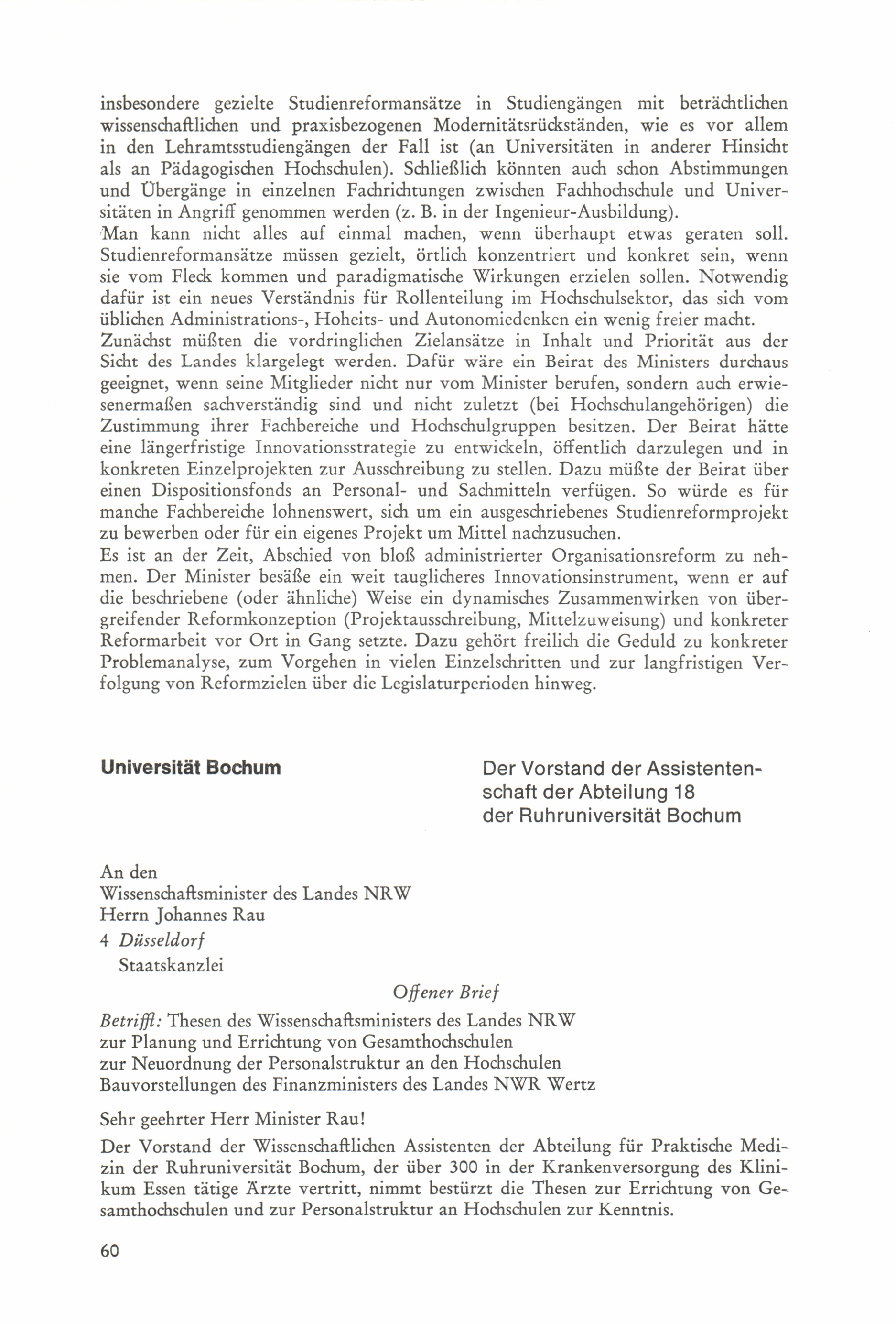Thesen zur Planung und Errichtung von Gesamthochschulen : Stellungnahmen / Der Minister für Wissenschaft und Forschung, Nordrhein-Westfalen