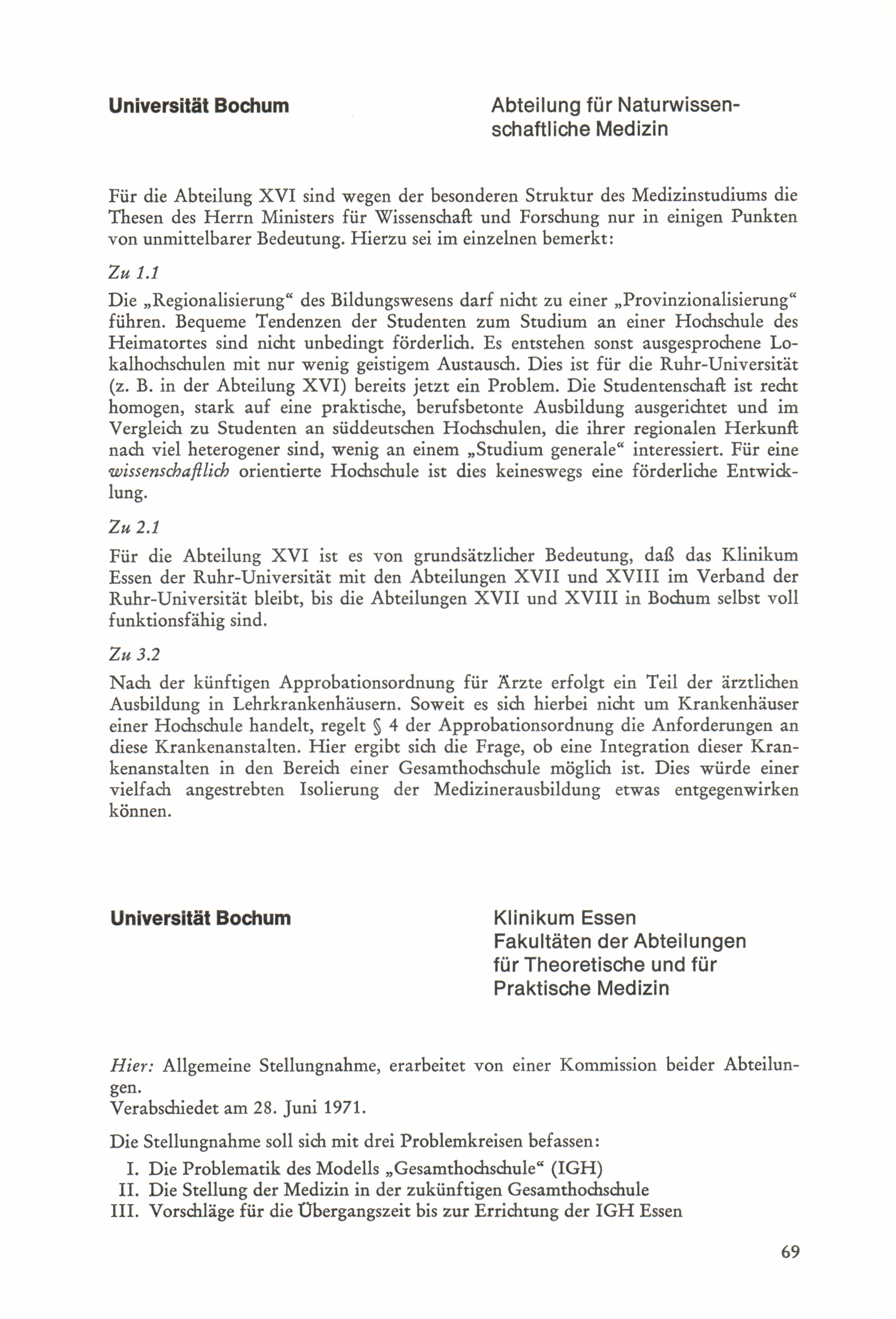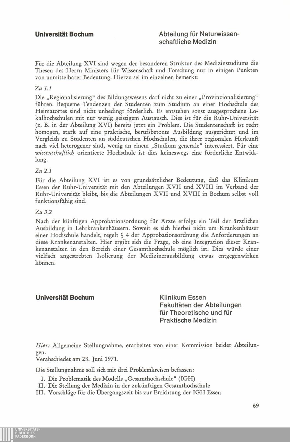 Thesen zur Planung und Errichtung von Gesamthochschulen : Stellungnahmen / Der Minister für Wissenschaft und Forschung, Nordrhein-Westfalen