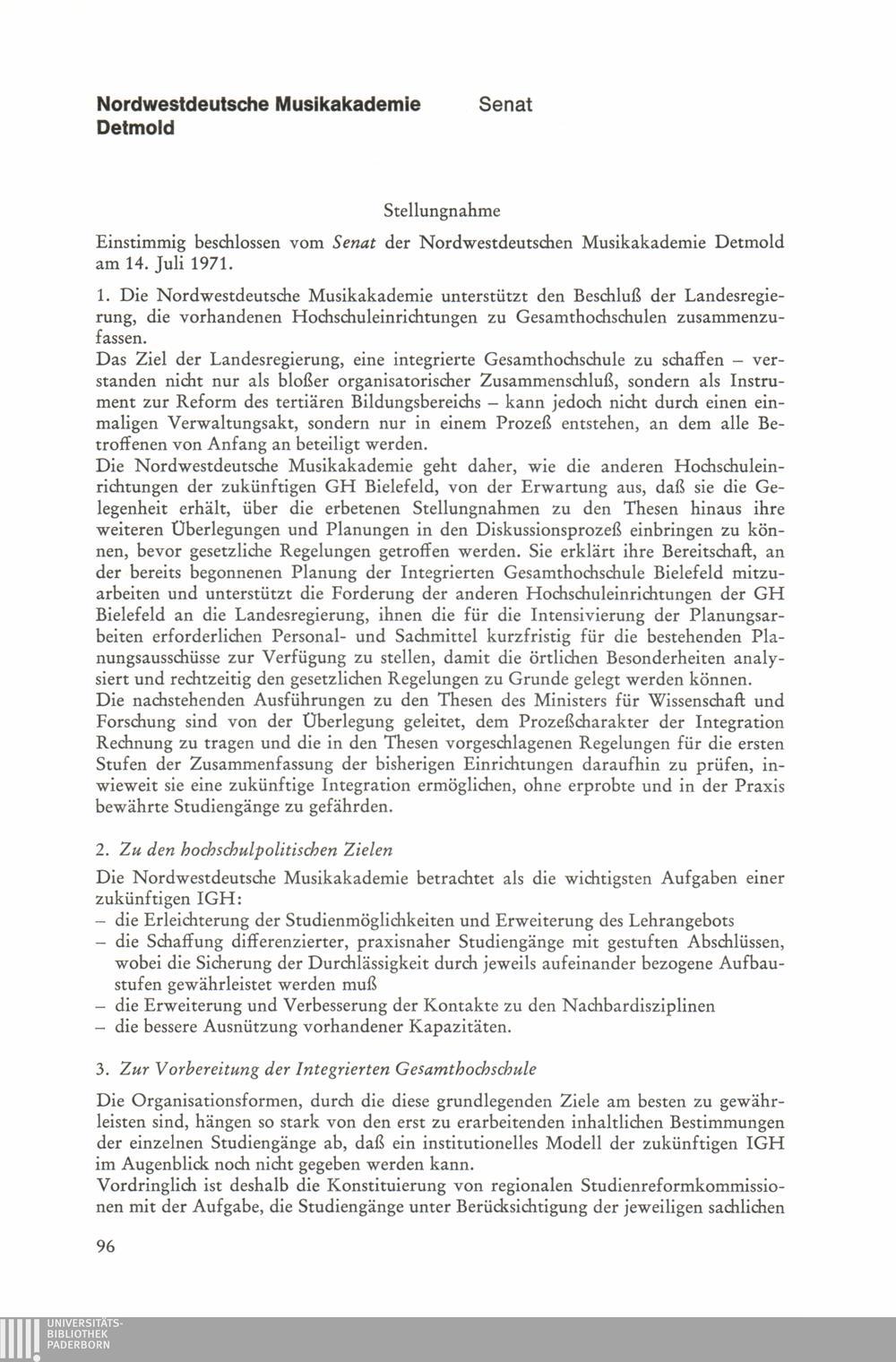 Thesen zur Planung und Errichtung von Gesamthochschulen : Stellungnahmen / Der Minister für Wissenschaft und Forschung, Nordrhein-Westfalen