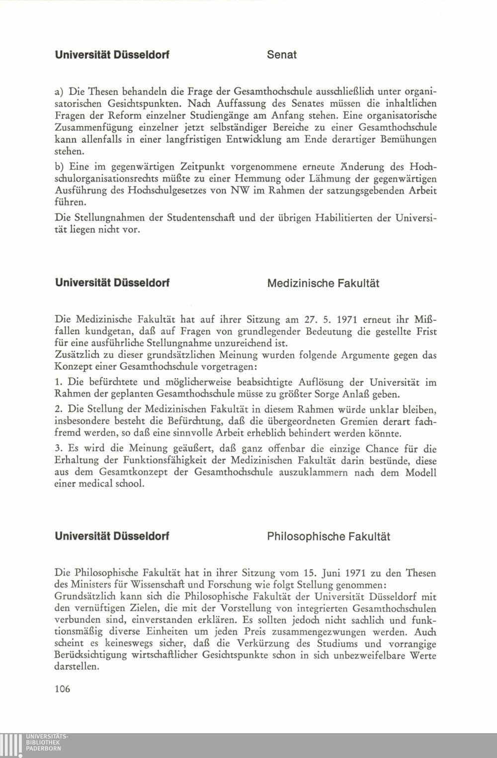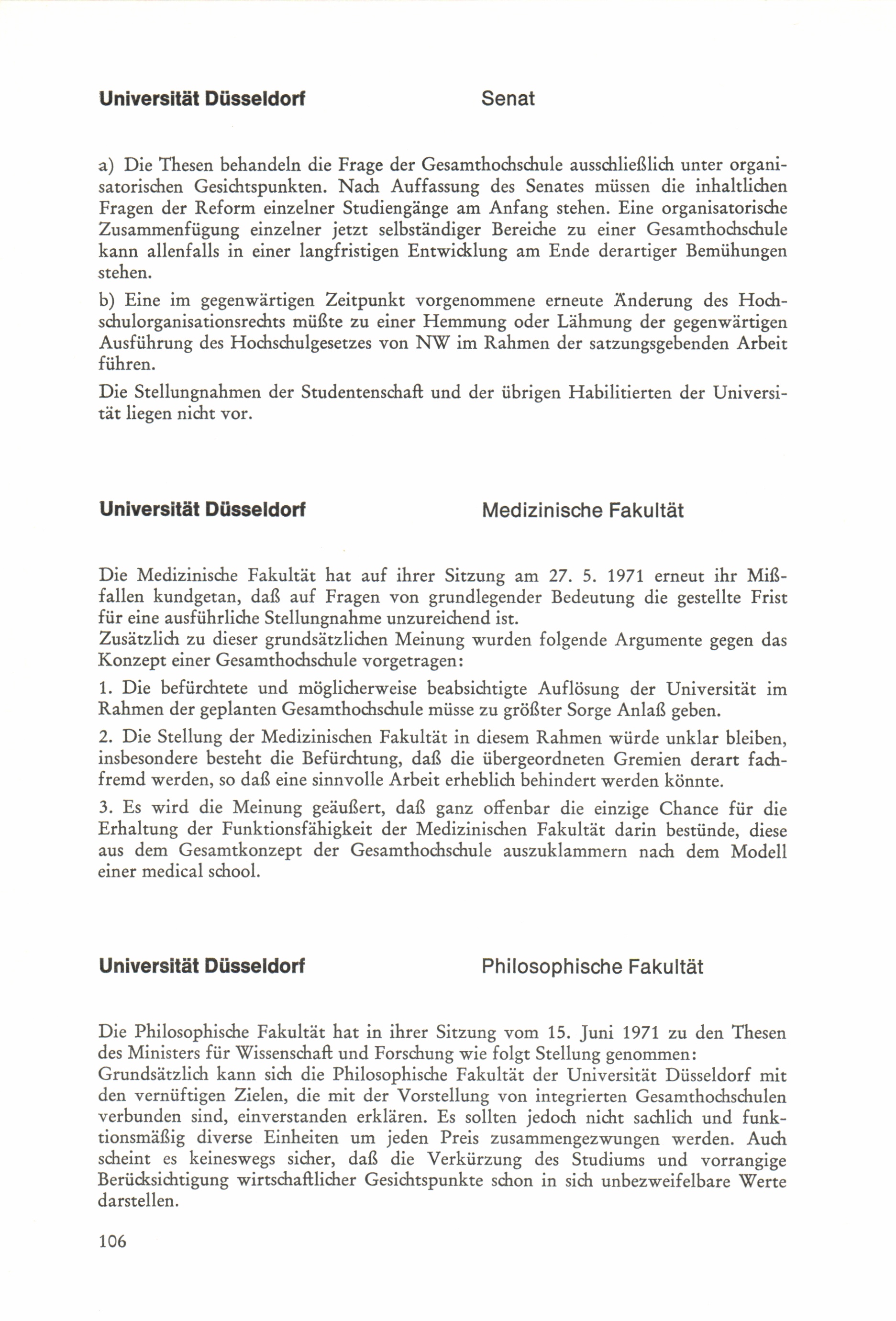 Thesen zur Planung und Errichtung von Gesamthochschulen : Stellungnahmen / Der Minister für Wissenschaft und Forschung, Nordrhein-Westfalen