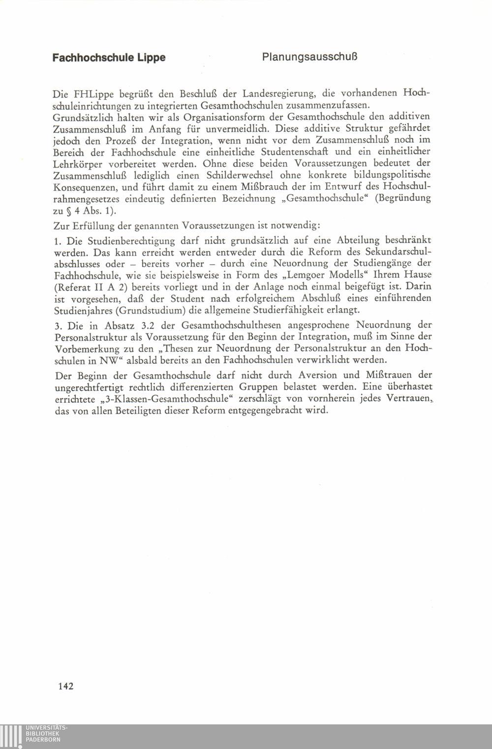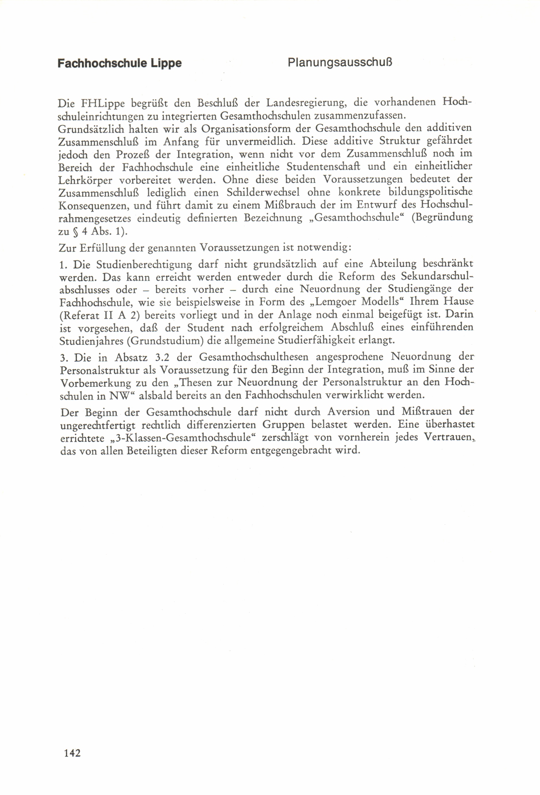 Thesen zur Planung und Errichtung von Gesamthochschulen