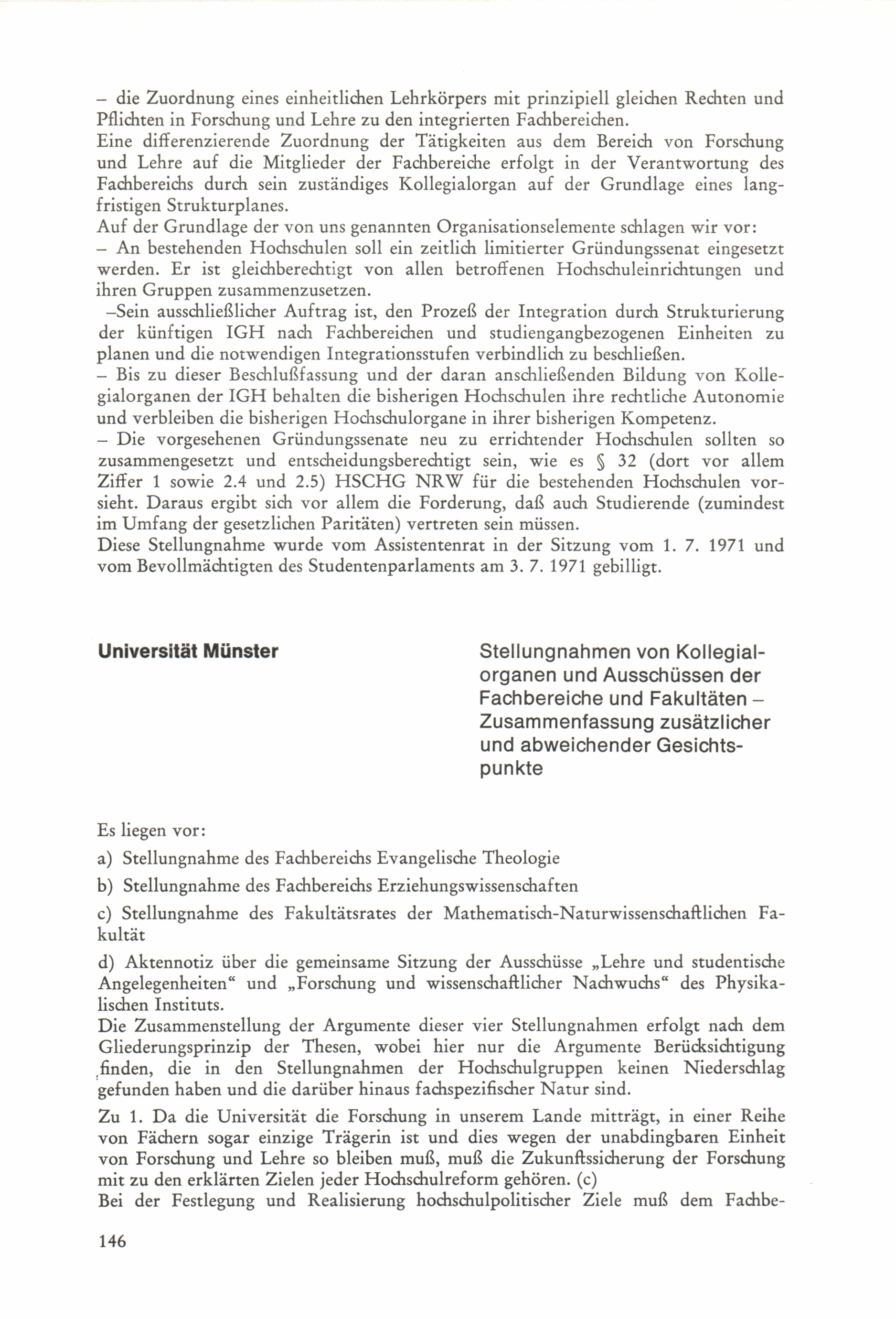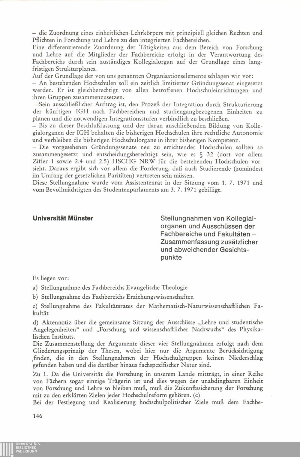 Thesen zur Planung und Errichtung von Gesamthochschulen : Stellungnahmen / Der Minister für Wissenschaft und Forschung, Nordrhein-Westfalen