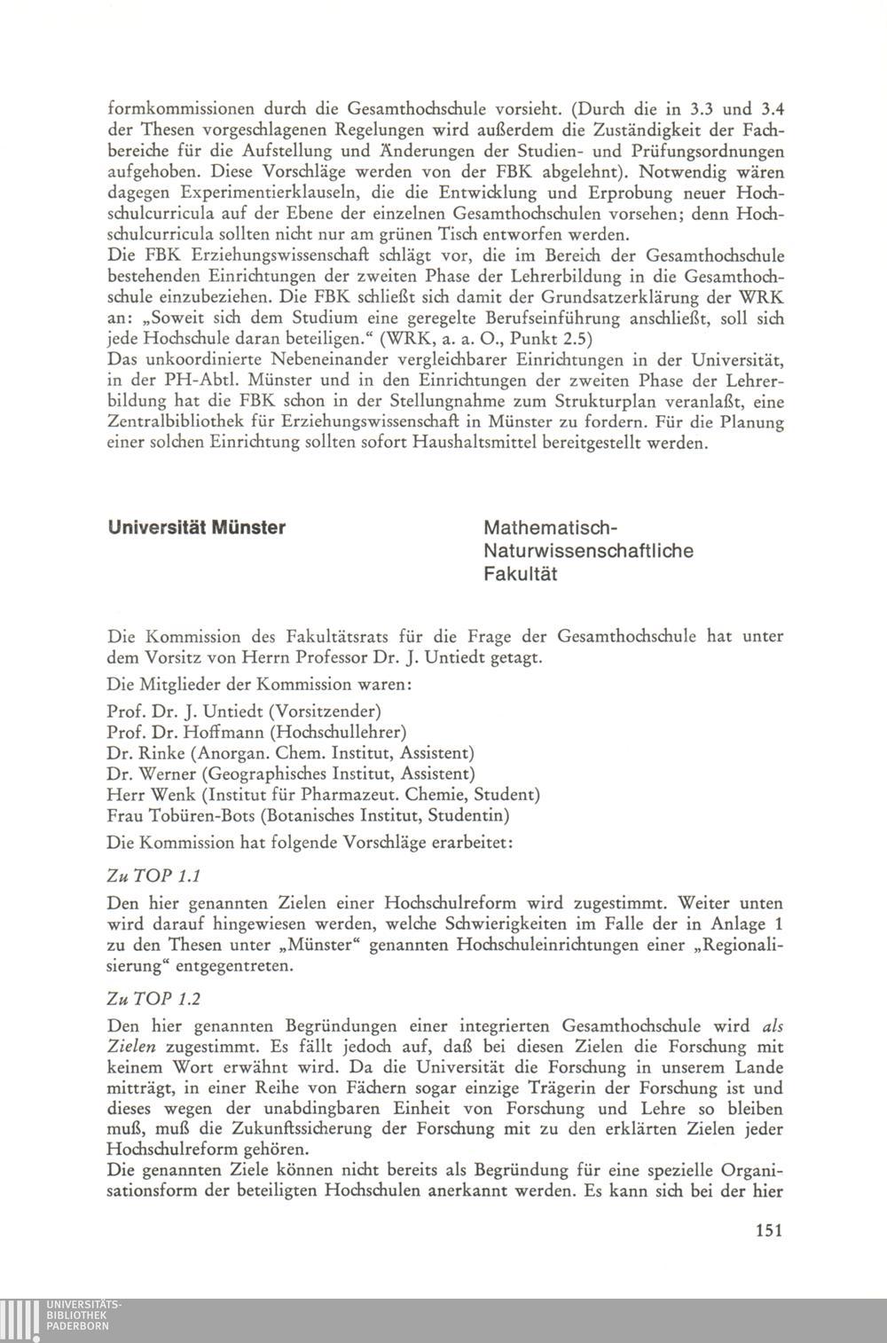 Thesen zur Planung und Errichtung von Gesamthochschulen
