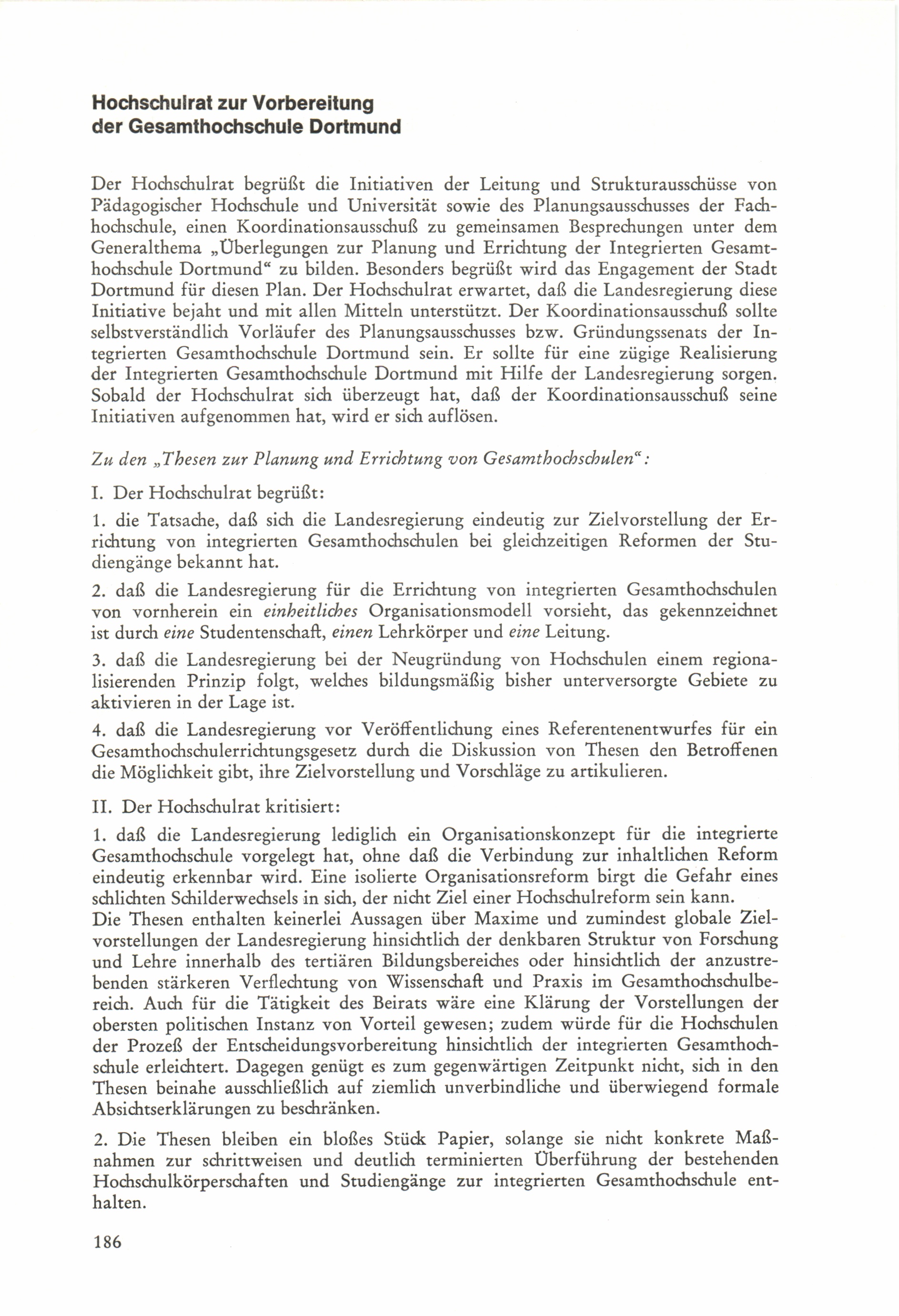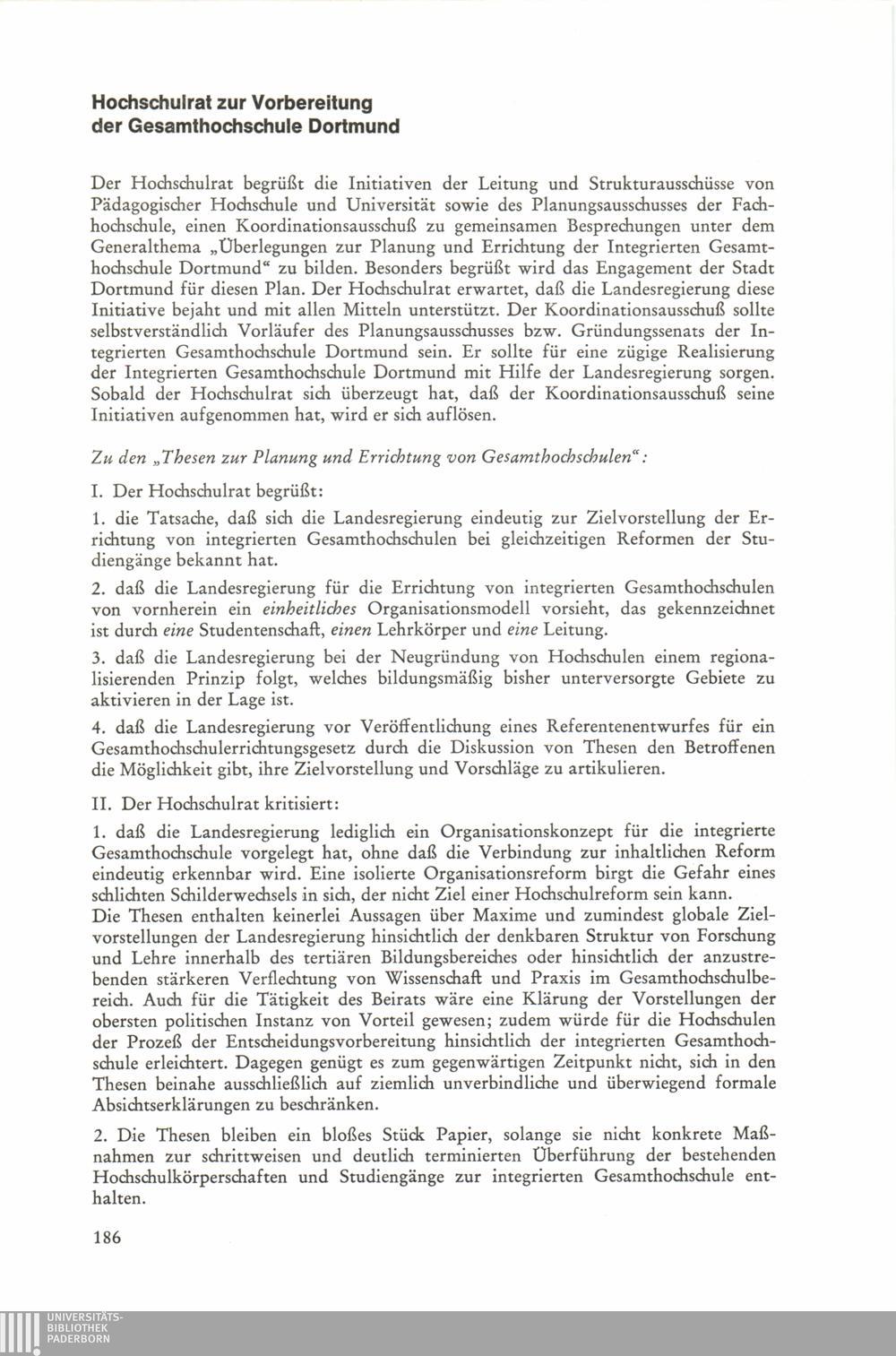 Thesen zur Planung und Errichtung von Gesamthochschulen