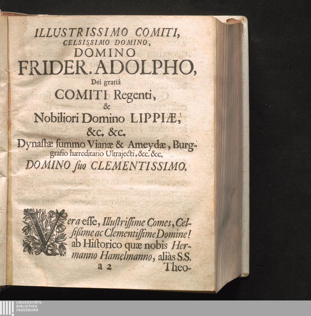 Hermanni Hamelmanni, S. S. Theol. Licent. & dum viveret Superint. Oldenburgici, Opera Genealogico-Historica, De Westphalia & Saxonia Inferiori : In quibus non solum Res Gestae Seculi XVI. & Anteriorum temporum, tam Ecclesiasticæ quam Politicæ, fideliter & parti judicio exhibentur, Sed & de totius Westphaliae provinciis, urbibus, incolis veteribus, literatis, comitum familiis ... historia traditur, Partim ex Manuscriptis Auctoris ... ex augustâ Guelpherbytana Bibliotheca communicatis ... in unum volumen congesta / Ab Ernesto Casim. Wasserbach. JCto. Accessit Vita Hamelmanni, cum indice sufficientissimo