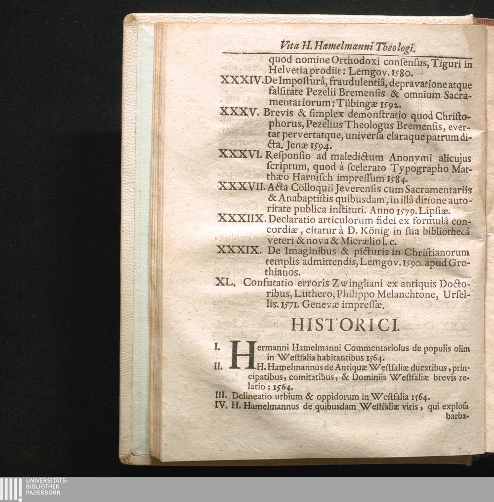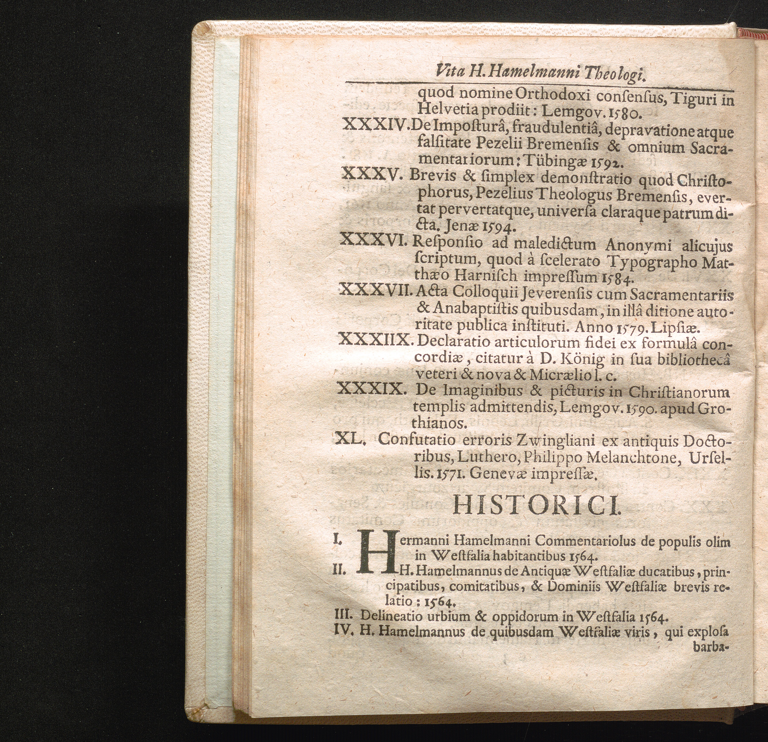 Hermanni Hamelmanni, S. S. Theol. Licent. & dum viveret Superint. Oldenburgici, Opera Genealogico-Historica, De Westphalia & Saxonia Inferiori : In quibus non solum Res Gestae Seculi XVI. & Anteriorum temporum, tam Ecclesiasticæ quam Politicæ, fideliter & parti judicio exhibentur, Sed & de totius Westphaliae provinciis, urbibus, incolis veteribus, literatis, comitum familiis ... historia traditur, Partim ex Manuscriptis Auctoris ... ex augustâ Guelpherbytana Bibliotheca communicatis ... in unum volumen congesta / Ab Ernesto Casim. Wasserbach. JCto. Accessit Vita Hamelmanni, cum indice sufficientissimo