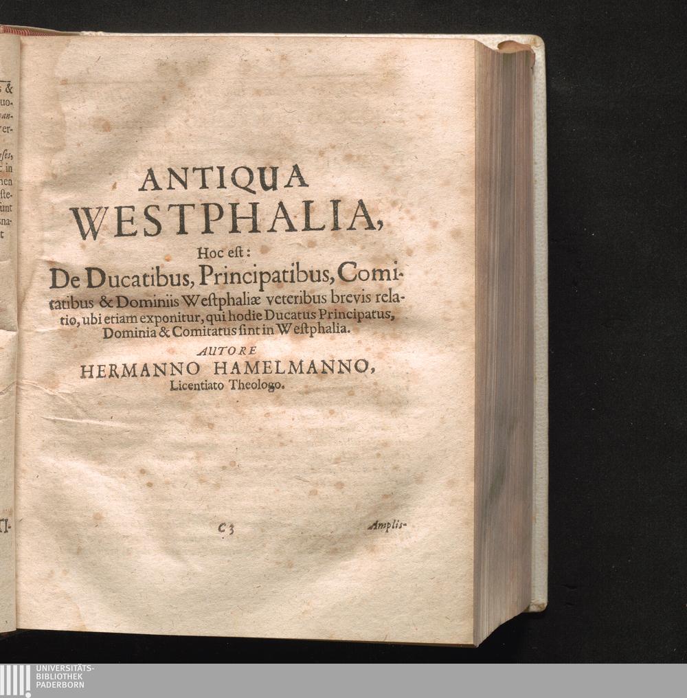 Hermanni Hamelmanni, S. S. Theol. Licent. & dum viveret Superint. Oldenburgici, Opera Genealogico-Historica, De Westphalia & Saxonia Inferiori : In quibus non solum Res Gestae Seculi XVI. & Anteriorum temporum, tam Ecclesiasticæ quam Politicæ, fideliter & parti judicio exhibentur, Sed & de totius Westphaliae provinciis, urbibus, incolis veteribus, literatis, comitum familiis ... historia traditur, Partim ex Manuscriptis Auctoris ... ex augustâ Guelpherbytana Bibliotheca communicatis ... in unum volumen congesta / Ab Ernesto Casim. Wasserbach. JCto. Accessit Vita Hamelmanni, cum indice sufficientissimo