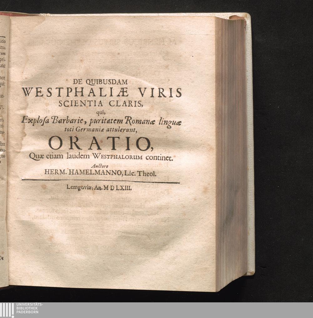 Hermanni Hamelmanni, S. S. Theol. Licent. & dum viveret Superint. Oldenburgici, Opera Genealogico-Historica, De Westphalia & Saxonia Inferiori : In quibus non solum Res Gestae Seculi XVI. & Anteriorum temporum, tam Ecclesiasticæ quam Politicæ, fideliter & parti judicio exhibentur, Sed & de totius Westphaliae provinciis, urbibus, incolis veteribus, literatis, comitum familiis ... historia traditur, Partim ex Manuscriptis Auctoris ... ex augustâ Guelpherbytana Bibliotheca communicatis ... in unum volumen congesta / Ab Ernesto Casim. Wasserbach. JCto. Accessit Vita Hamelmanni, cum indice sufficientissimo