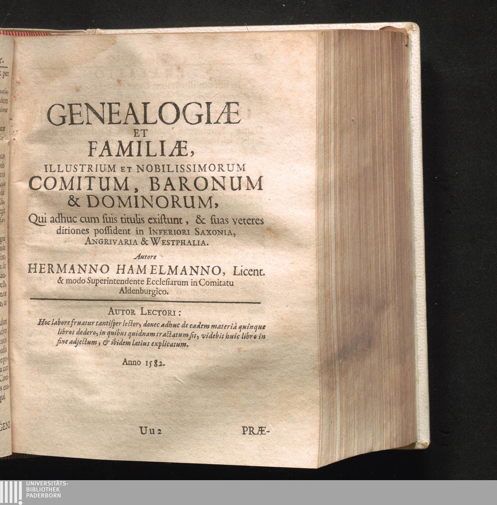 Hermanni Hamelmanni, S. S. Theol. Licent. & dum viveret Superint. Oldenburgici, Opera Genealogico-Historica, De Westphalia & Saxonia Inferiori : In quibus non solum Res Gestae Seculi XVI. & Anteriorum temporum, tam Ecclesiasticæ quam Politicæ, fideliter & parti judicio exhibentur, Sed & de totius Westphaliae provinciis, urbibus, incolis veteribus, literatis, comitum familiis ... historia traditur, Partim ex Manuscriptis Auctoris ... ex augustâ Guelpherbytana Bibliotheca communicatis ... in unum volumen congesta / Ab Ernesto Casim. Wasserbach. JCto. Accessit Vita Hamelmanni, cum indice sufficientissimo
