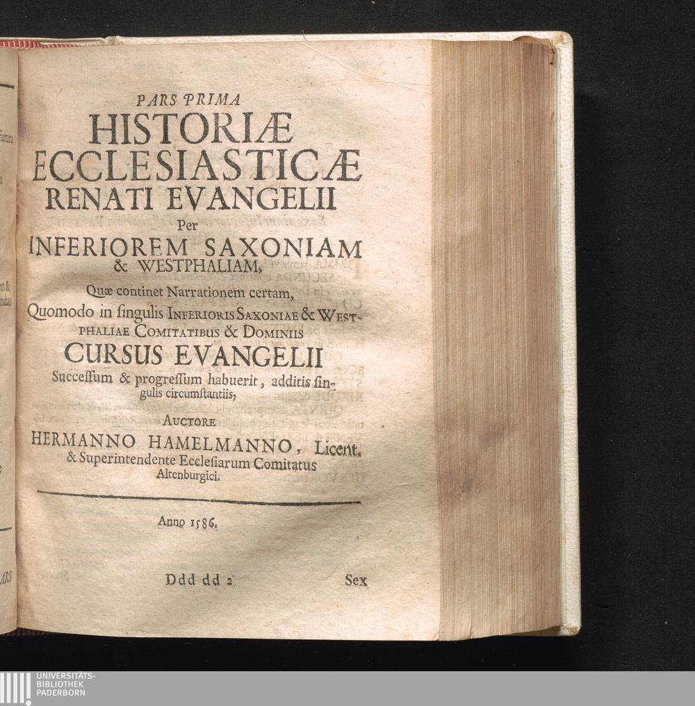 Hermanni Hamelmanni, S. S. Theol. Licent. & dum viveret Superint. Oldenburgici, Opera Genealogico-Historica, De Westphalia & Saxonia Inferiori : In quibus non solum Res Gestae Seculi XVI. & Anteriorum temporum, tam Ecclesiasticæ quam Politicæ, fideliter & parti judicio exhibentur, Sed & de totius Westphaliae provinciis, urbibus, incolis veteribus, literatis, comitum familiis ... historia traditur, Partim ex Manuscriptis Auctoris ... ex augustâ Guelpherbytana Bibliotheca communicatis ... in unum volumen congesta / Ab Ernesto Casim. Wasserbach. JCto. Accessit Vita Hamelmanni, cum indice sufficientissimo