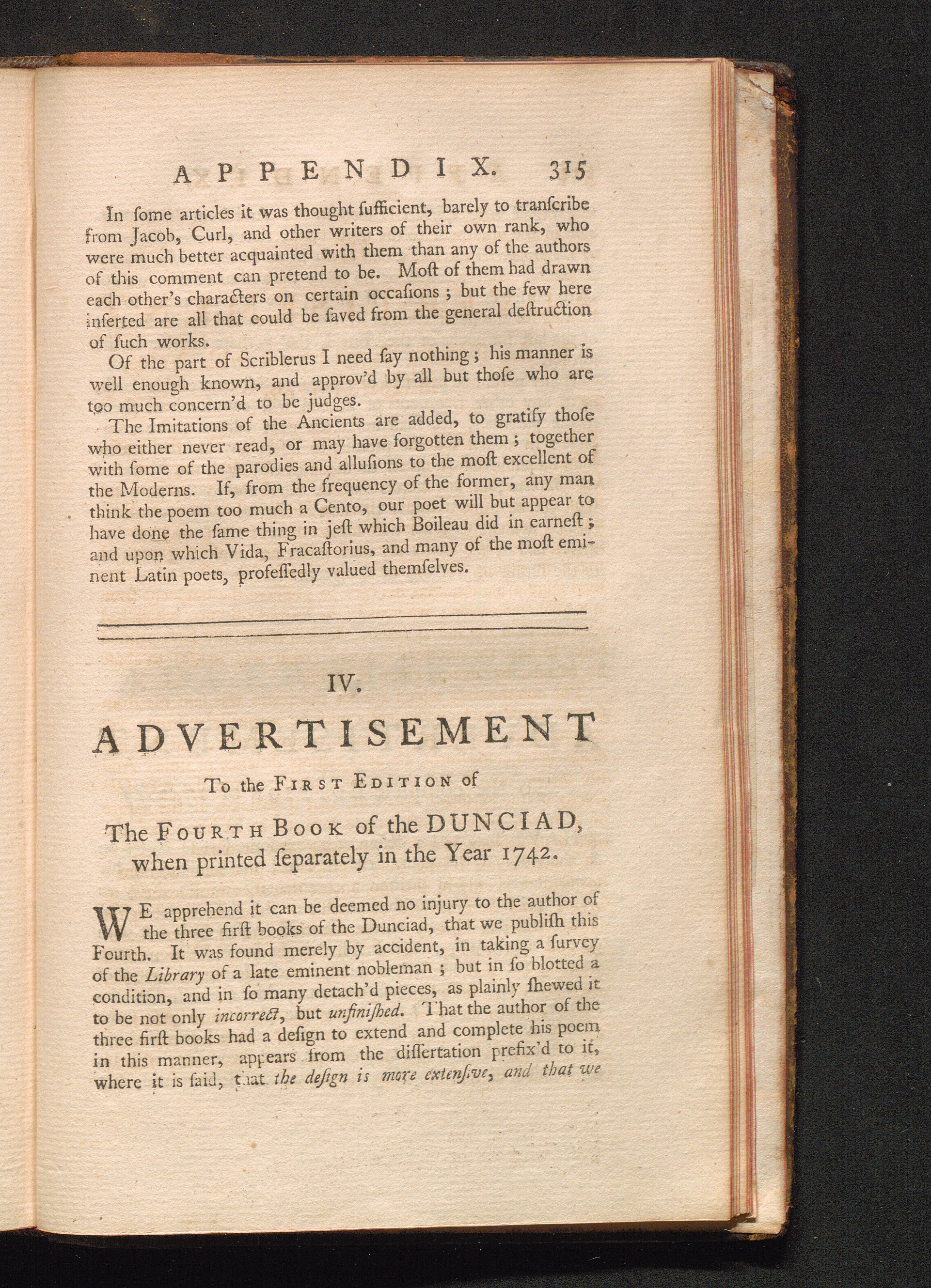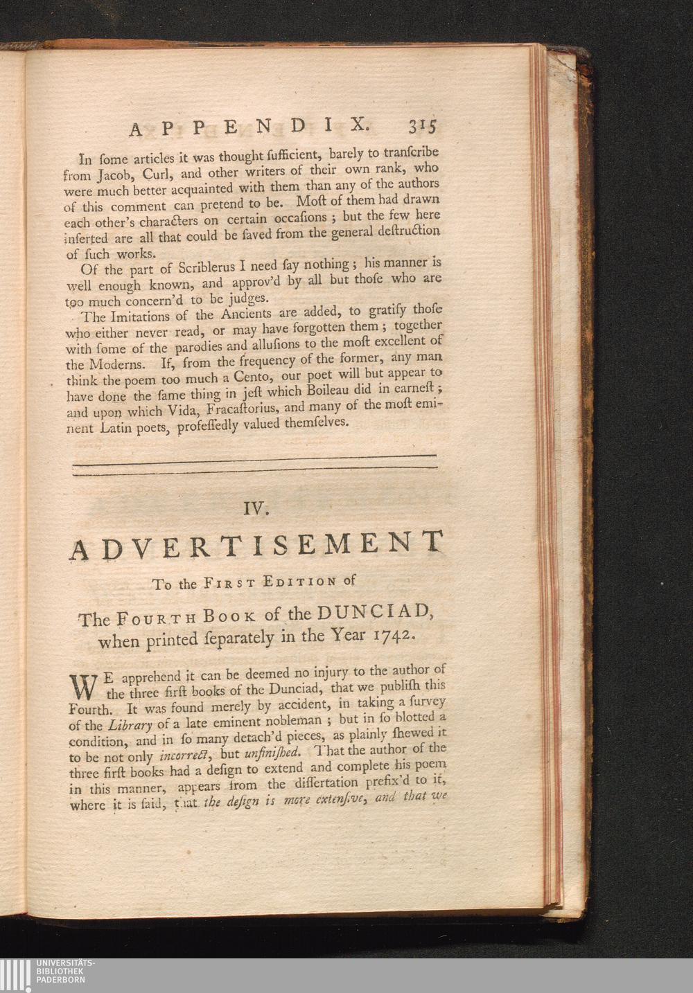 IV. Advertisement to the First edition of the Fourth Book when printed separatel[...]