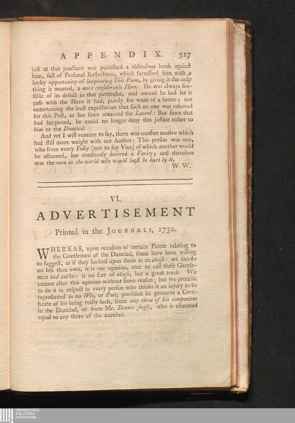 VI. Advertisement printed in the Journal of 1730.