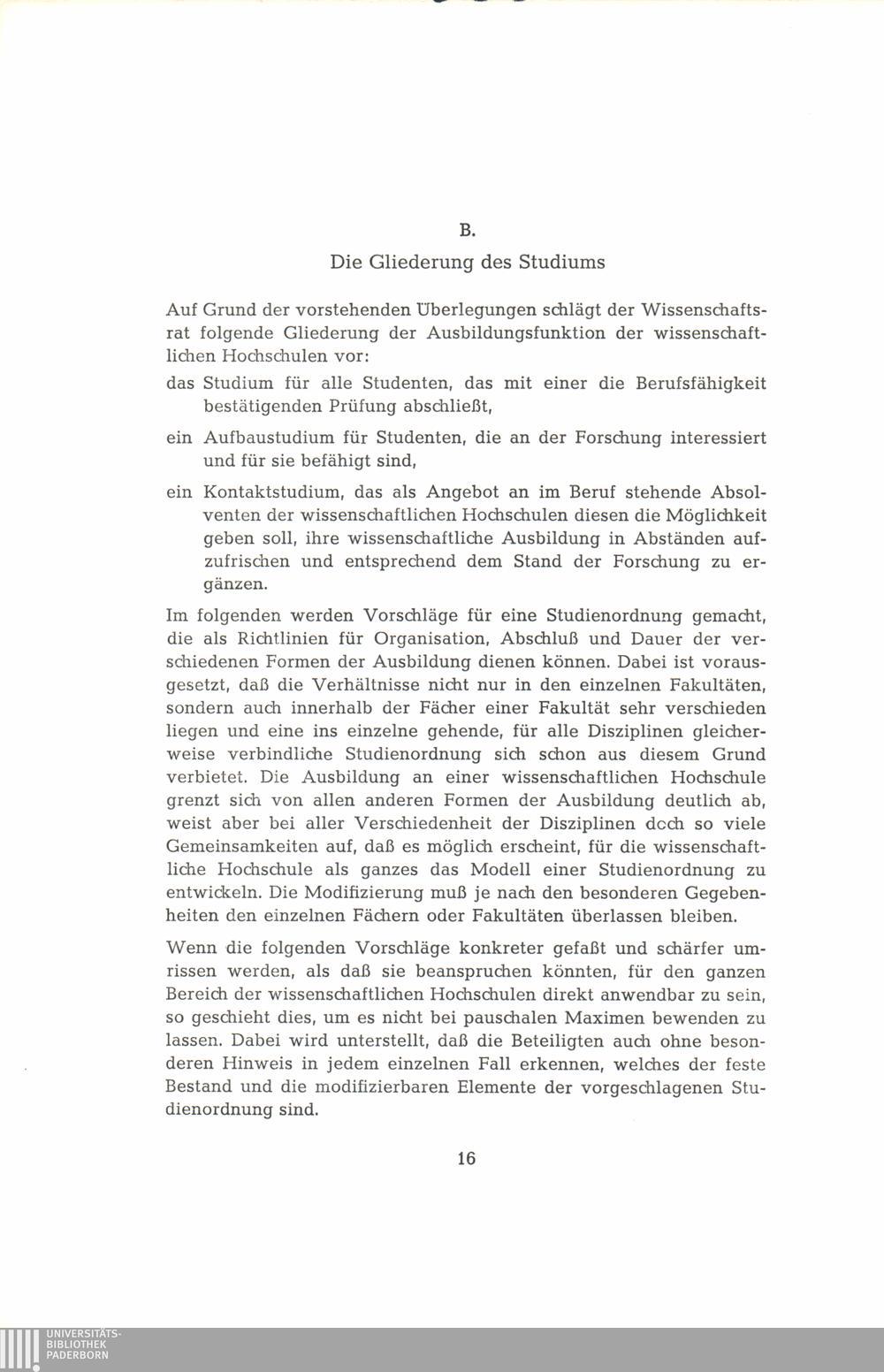 B. Die Gliederung des Studiums