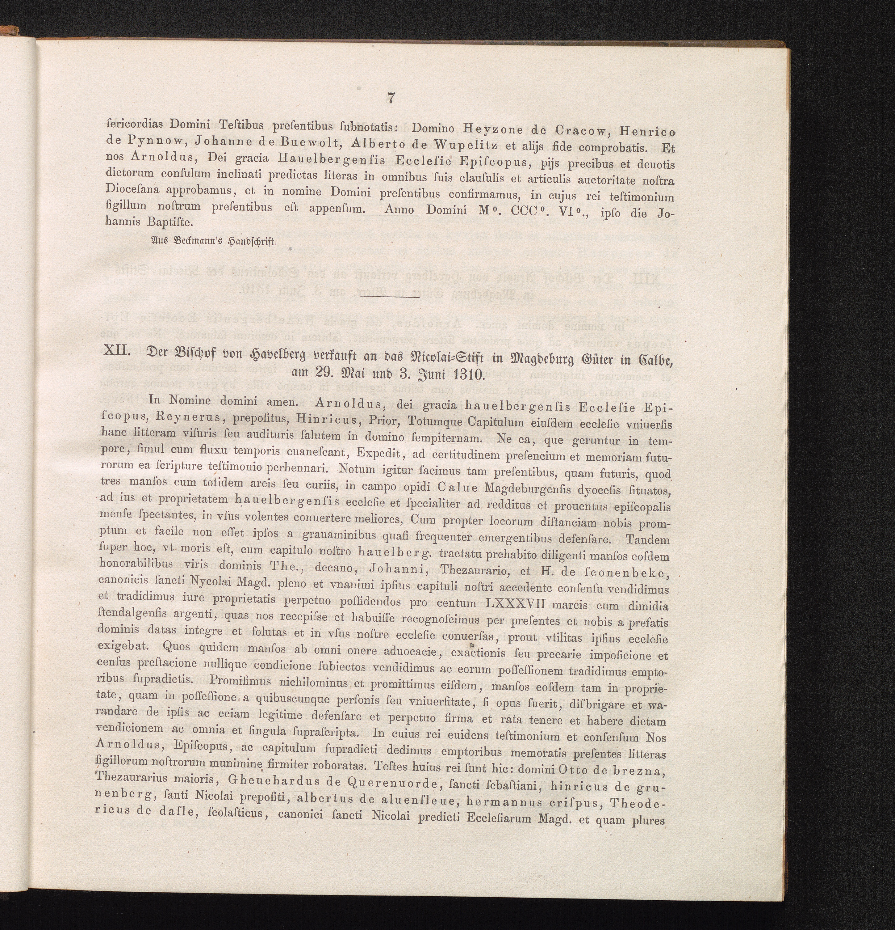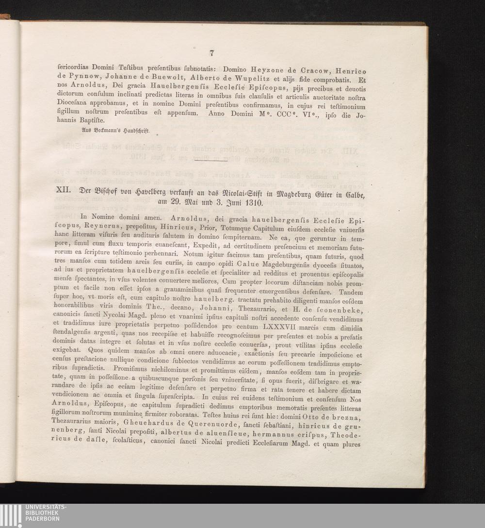 XII. Der Bischof von Havelberg verkuft an das Nicolai-Stift in Magdeburg Güter in[...]