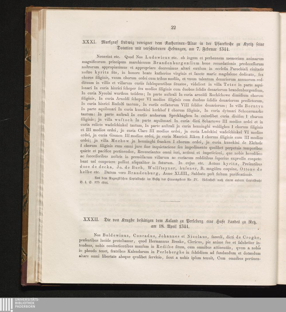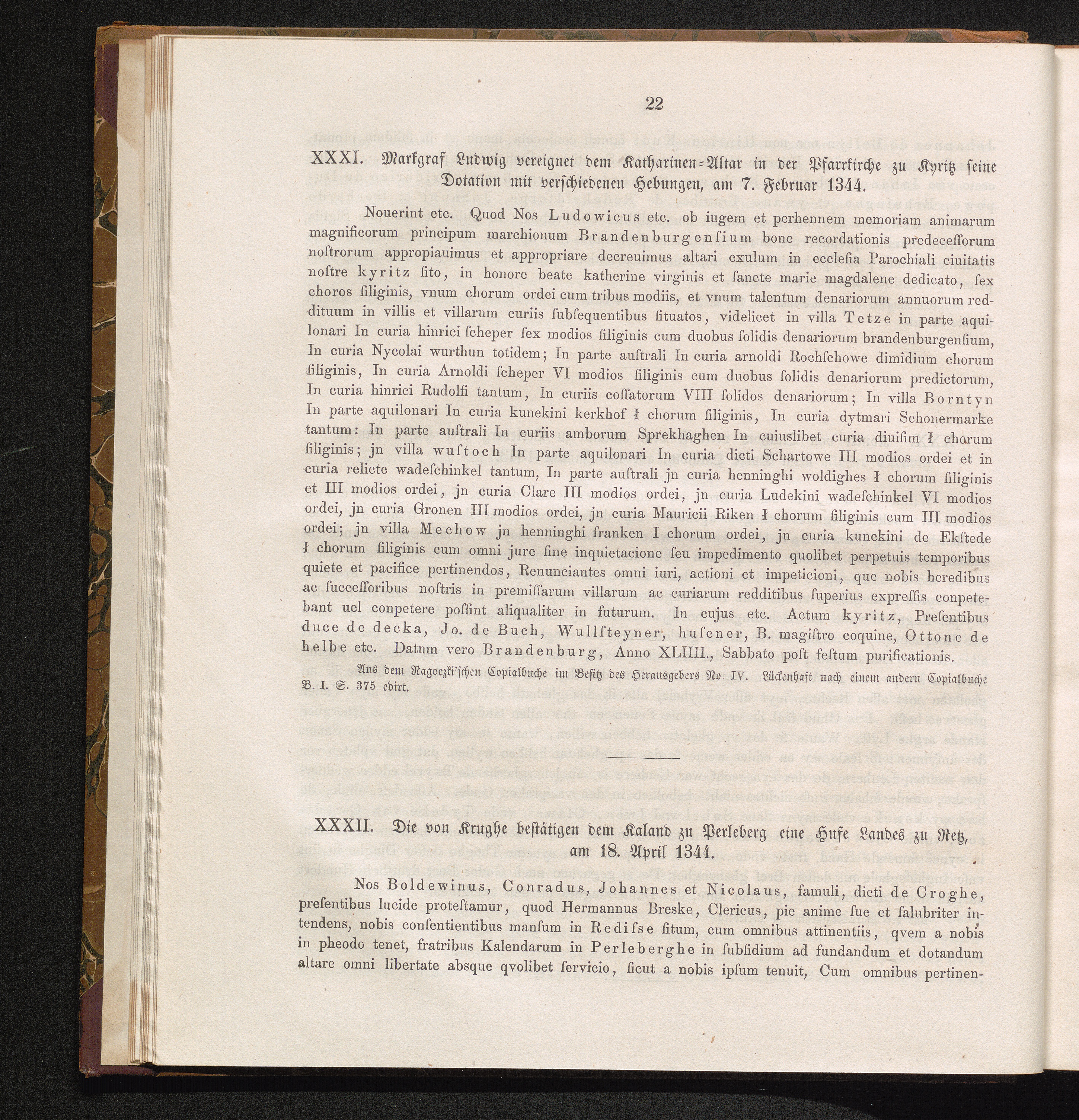 XXXI. Markgraf Ludwig vereignet dem Katharinen-Altar in der Pfarrkirche zu Kyritz[...]