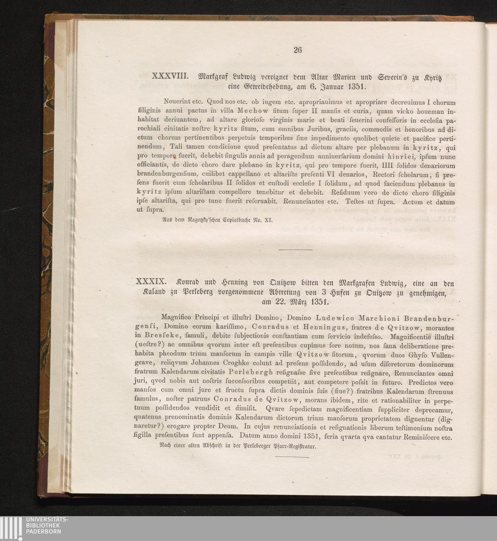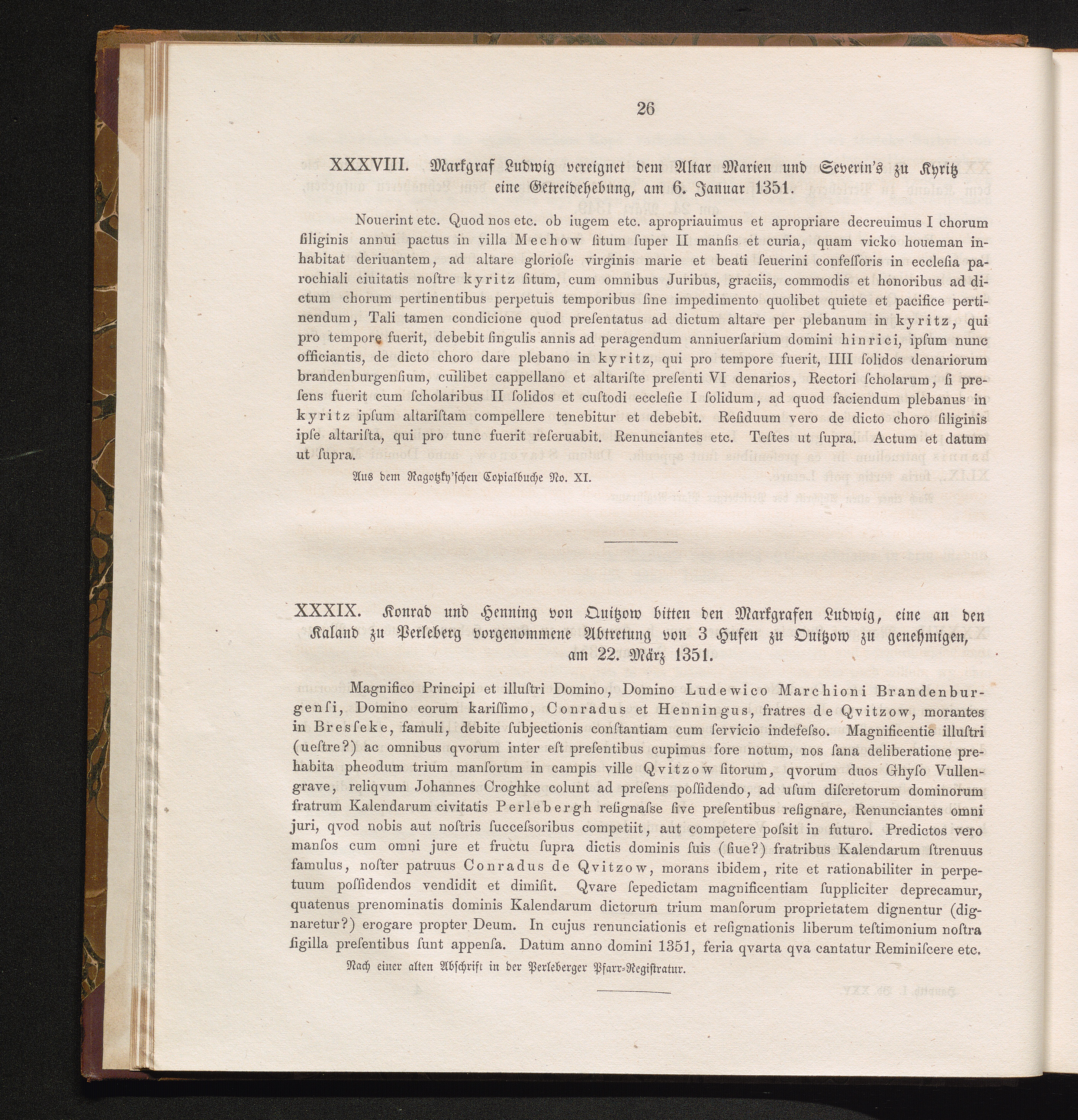 XXXVIII. Markgraf Ludwig vereignet dem Altar Marien und Severin's zu Kyritz eine[...]