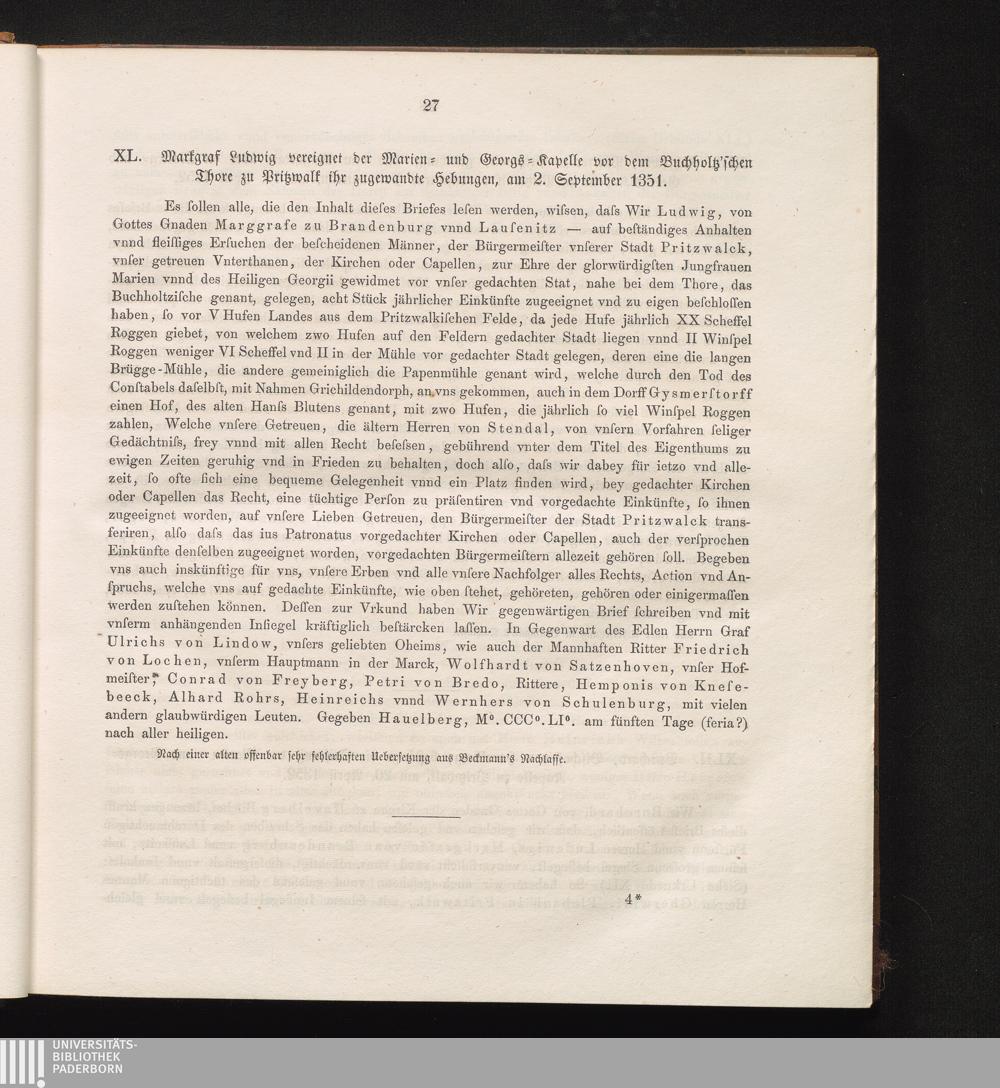 XL. Markgraf Ludwig vereignet der Marien- und Georgs-Kapelle vor dem Buchholtz'schen[...]