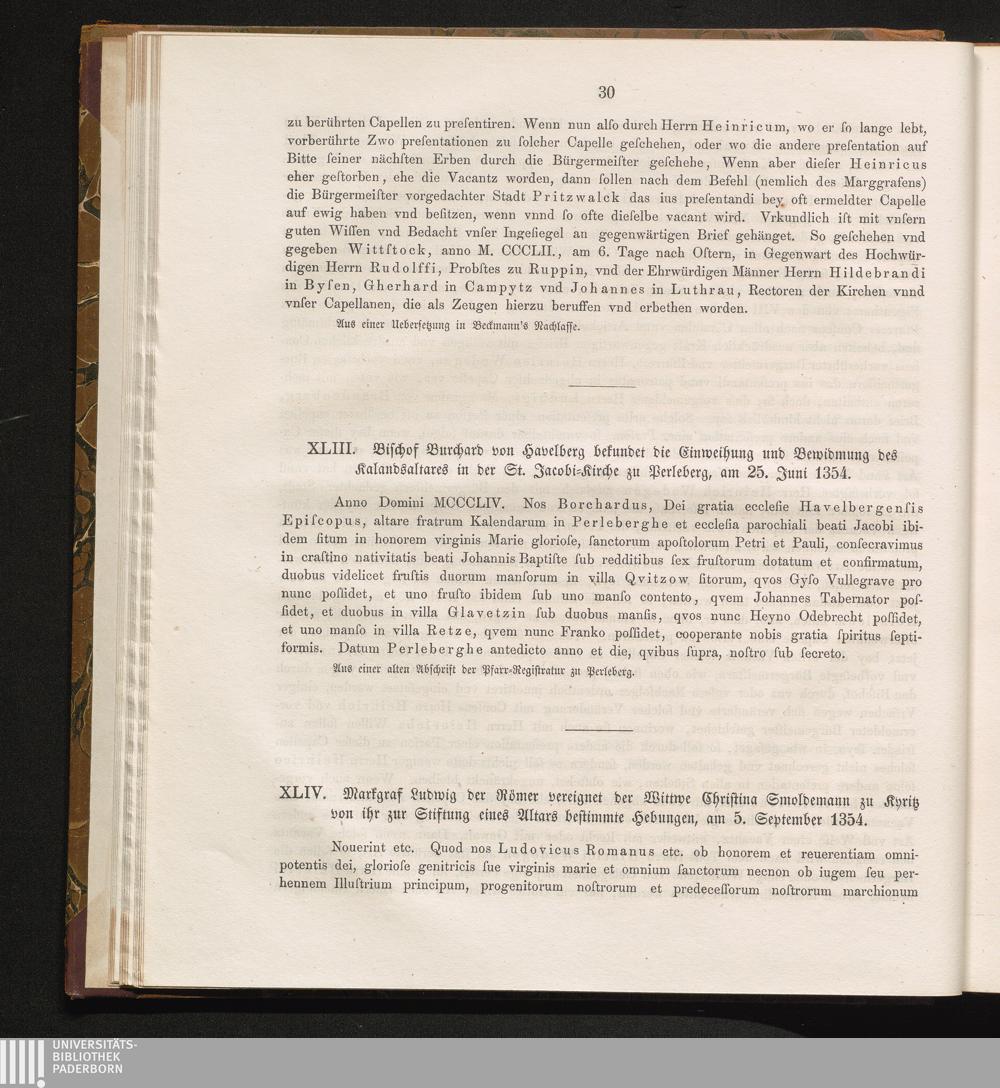 XLIII. Bischof Burchard von Havelberg bekundet die Einweihung und Bewidmung des Kalandsaltares[...]
