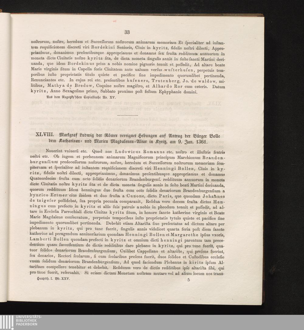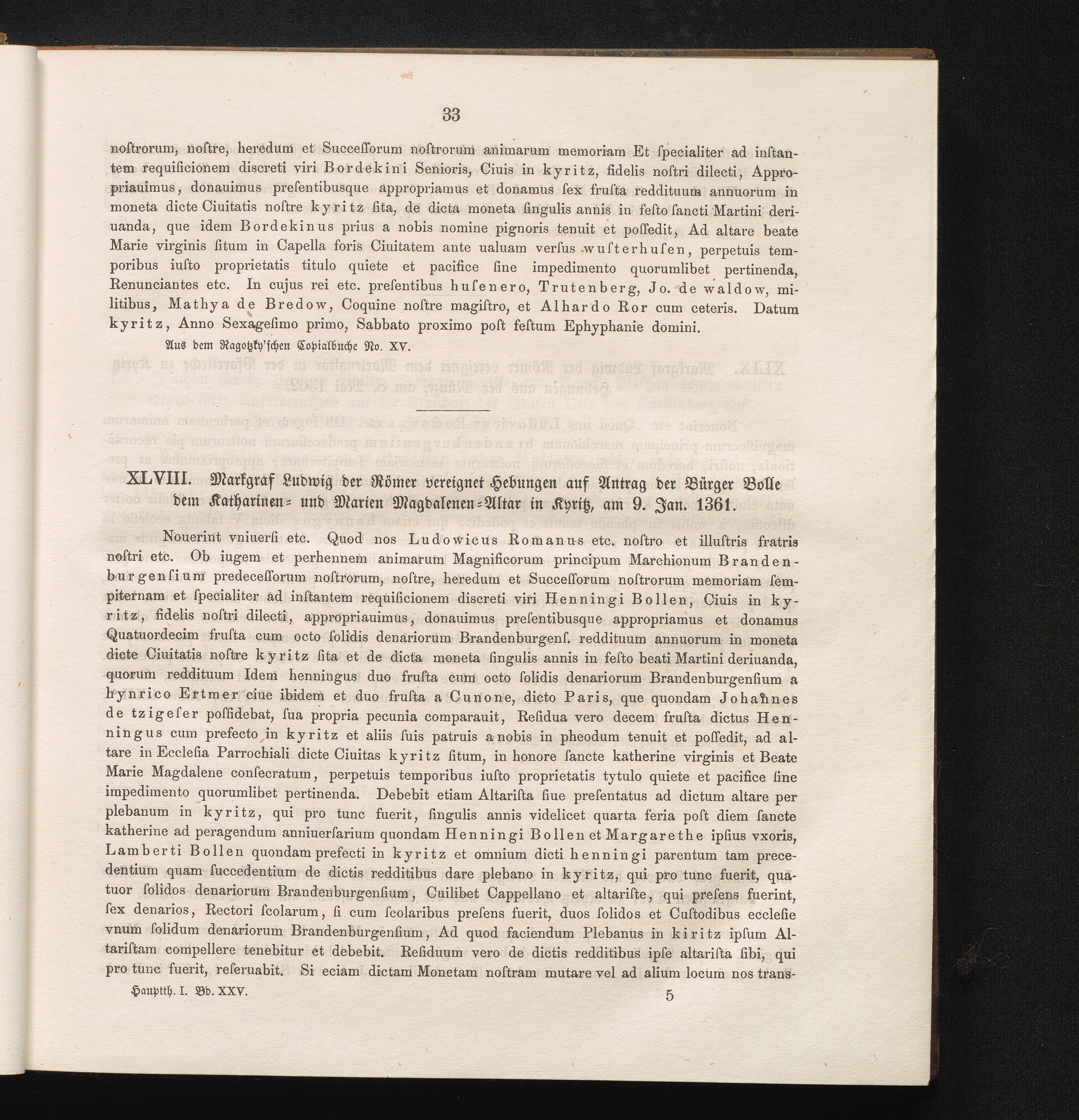 XLVIII. Markgraf Ludwig der Römer vereignet Hebungen auf Antrag der Bürger Bolle[...]