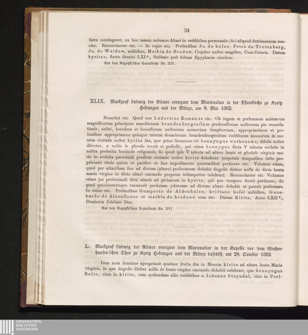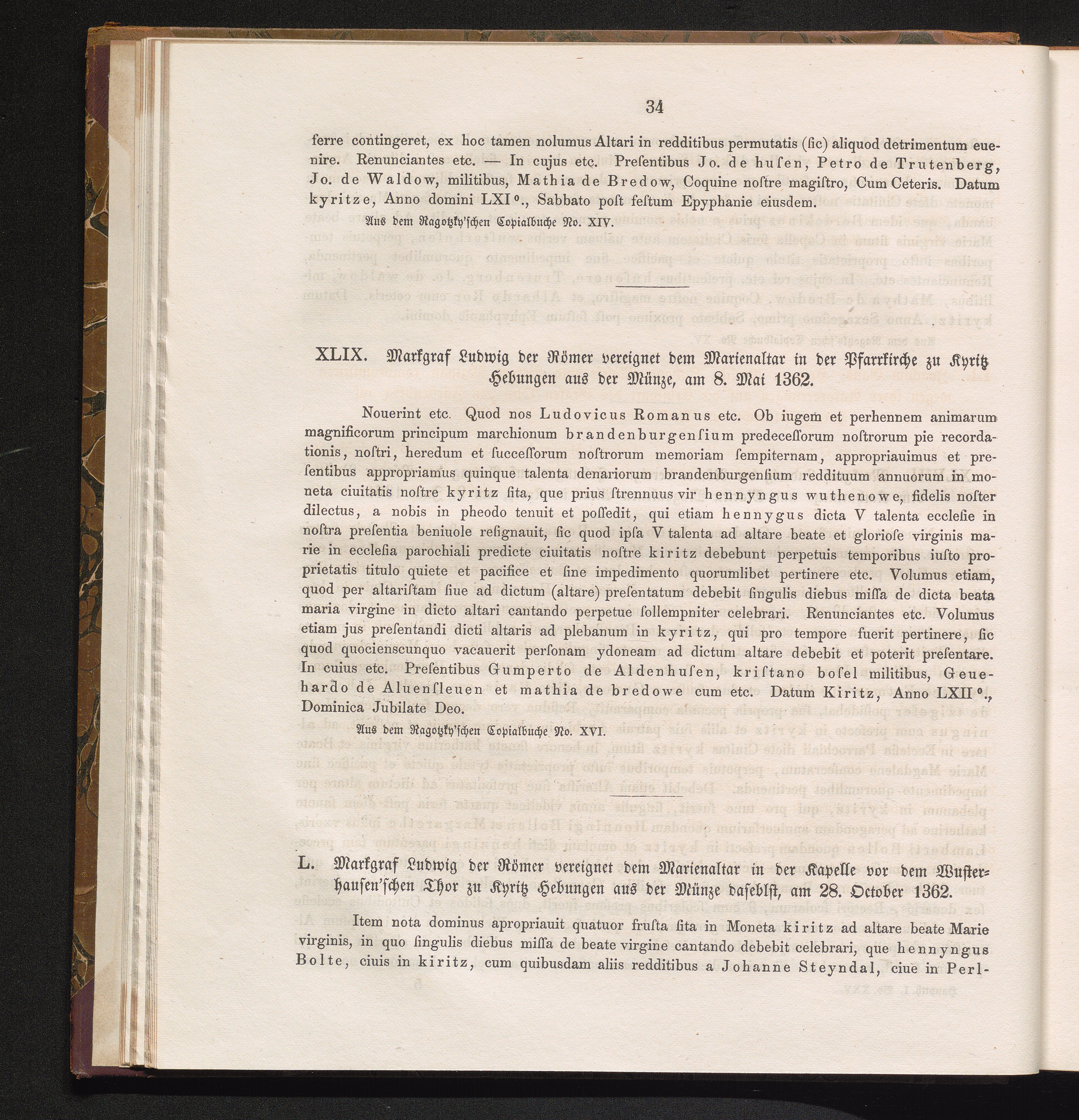 XLIX. Markgraf Ludwig der Römer vereignet dem Marienaltar in der Pfarrkirche zu Kyritz[...]