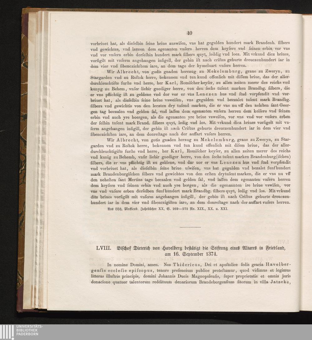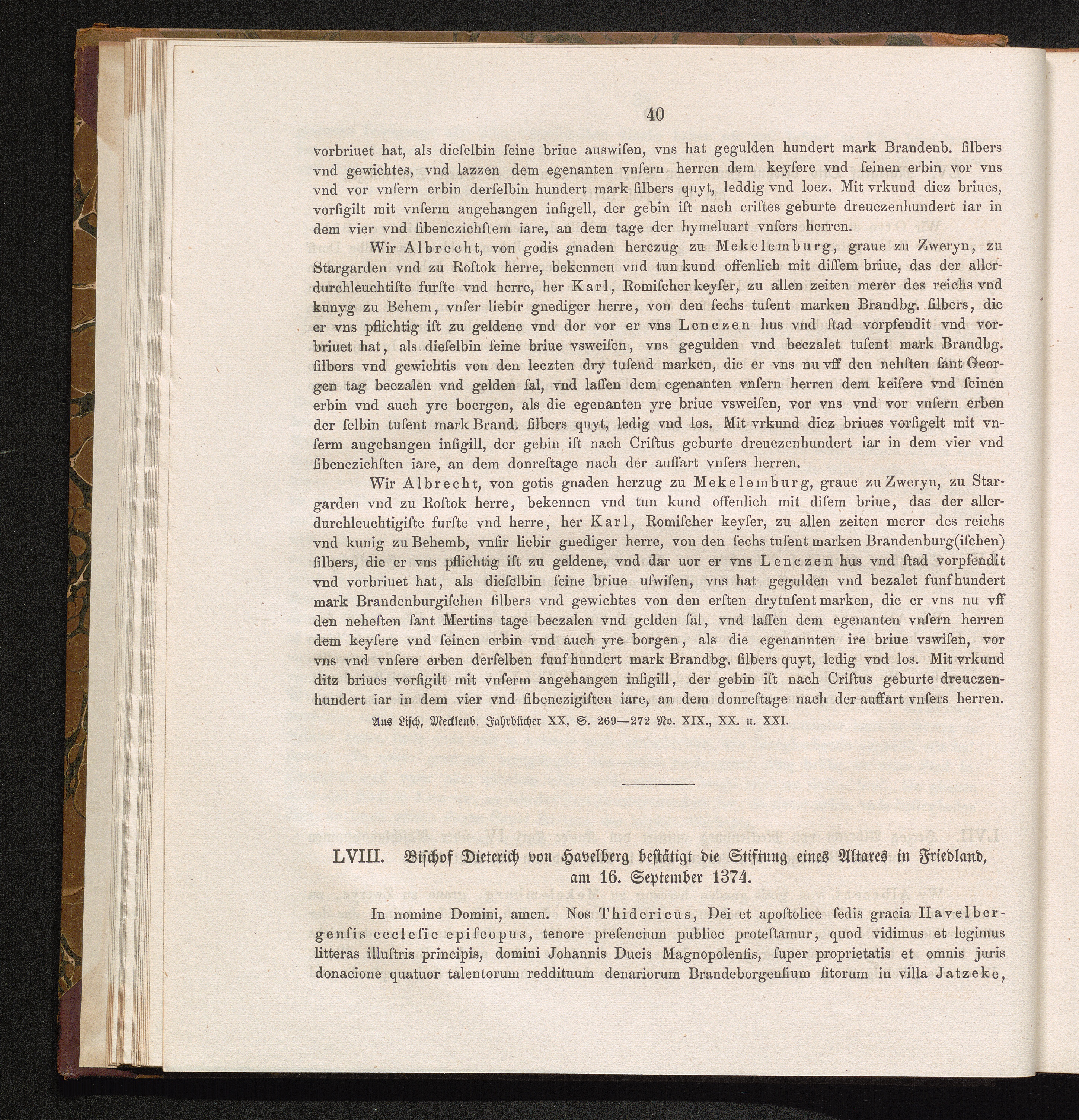 LVIII. Bischof Dieterich von Havelberg bestätigt die Stiftung eines Altares in Friedland,[...]