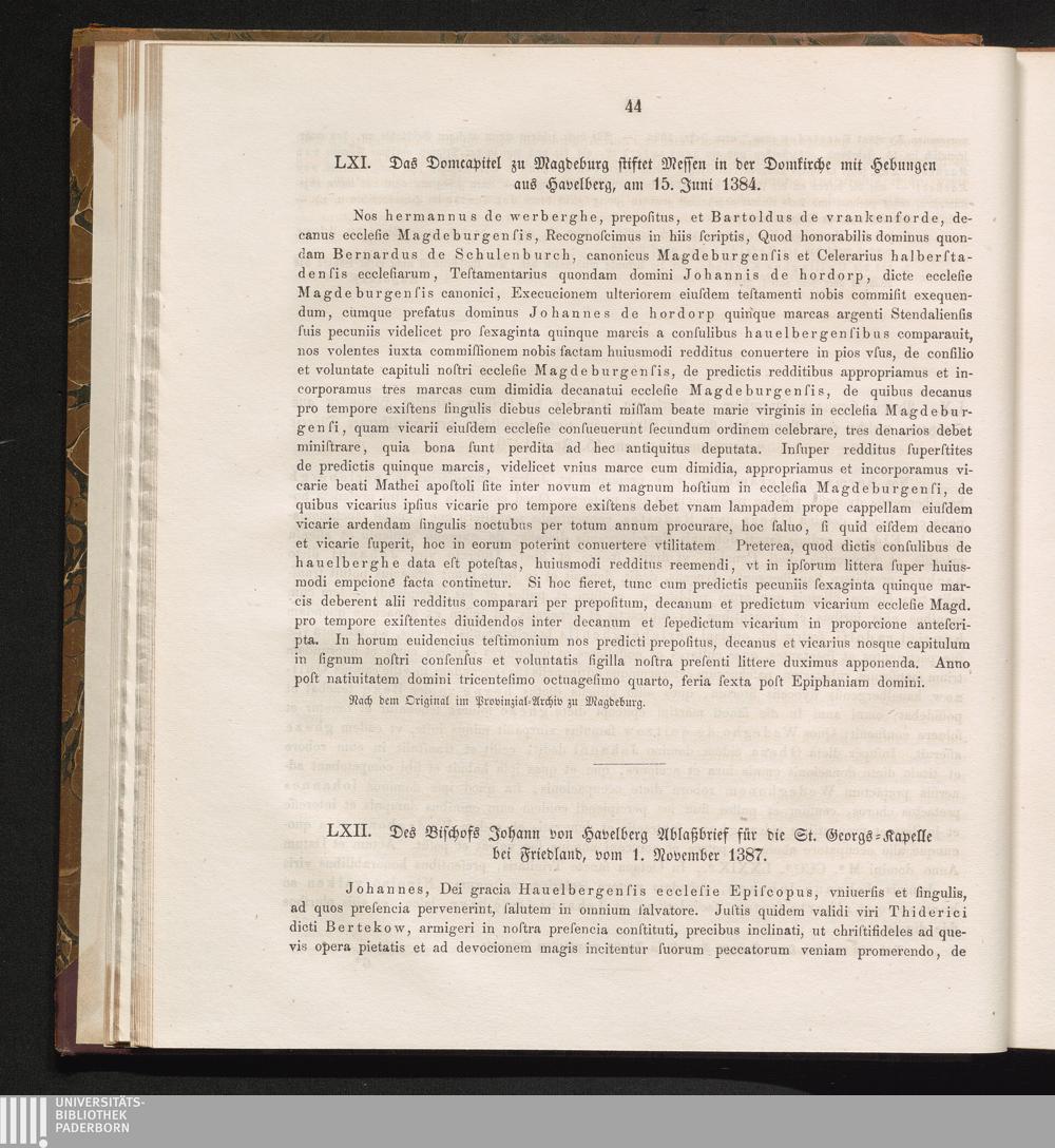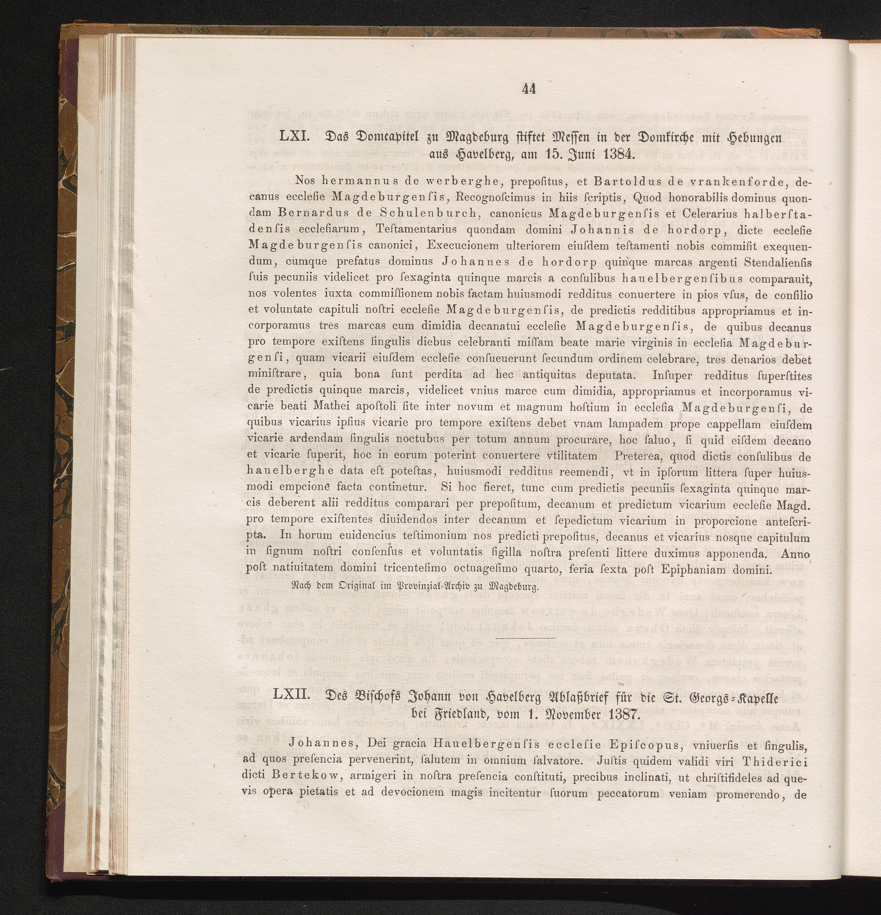 LXI. Das Domcapitel zu Magdeburg stiftet Messen in der Domkirche mit Hebungen aus[...]