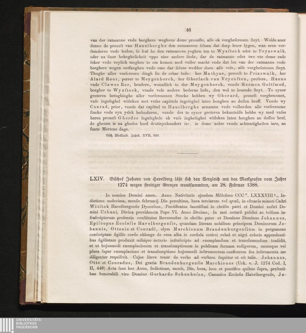 LXIV. Bischof Johann von Havelberg läßt sich den Vergleich mit den Markgrafen vom[...]
