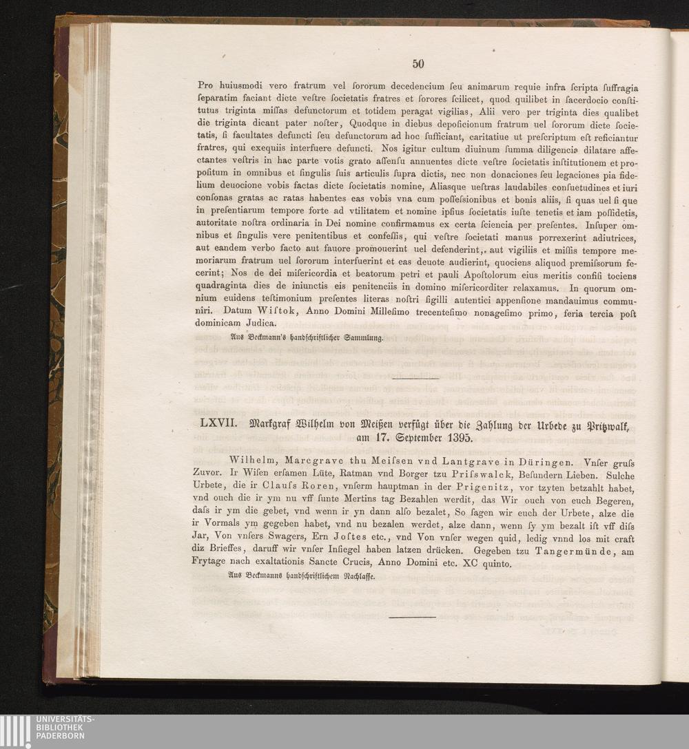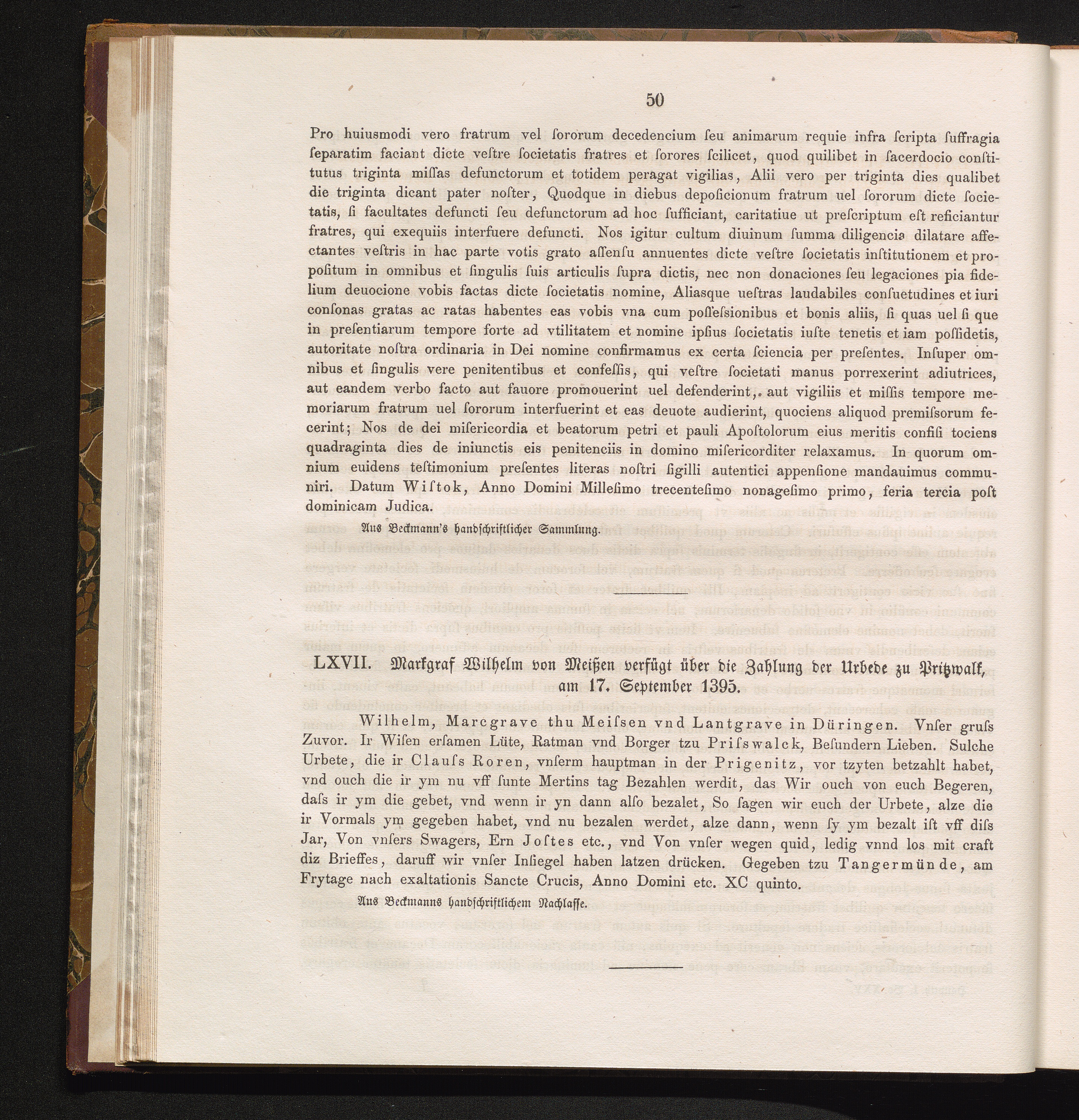LXVII. Markgraf Wilhelm von Meißen verfügt über die Zahlung der Urbede zu Pritzwalk,[...]