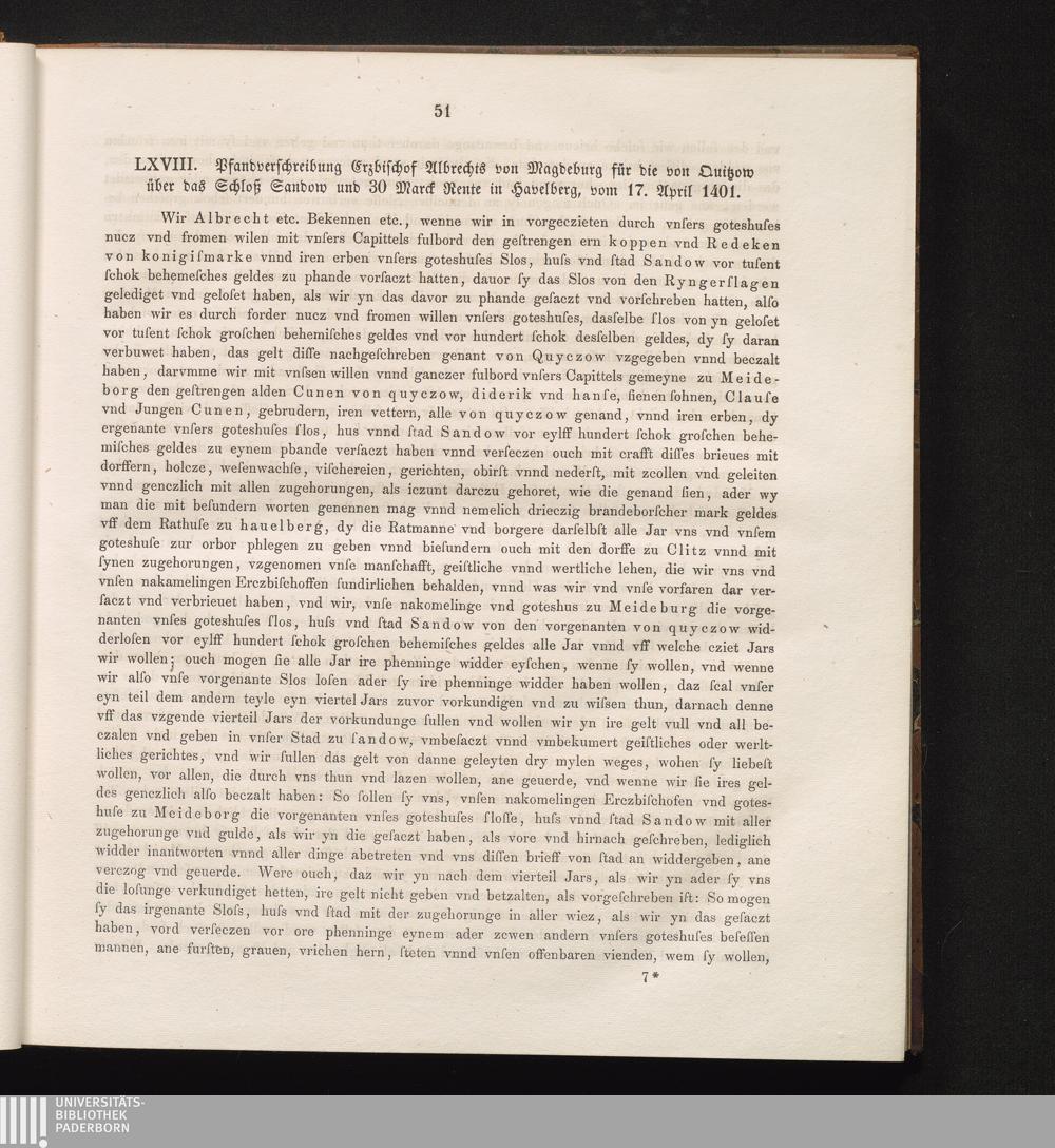 LXVIII. Pfandverschreibung Erzbischof Albrechts von Magdeburg für die von Quitzow[...]