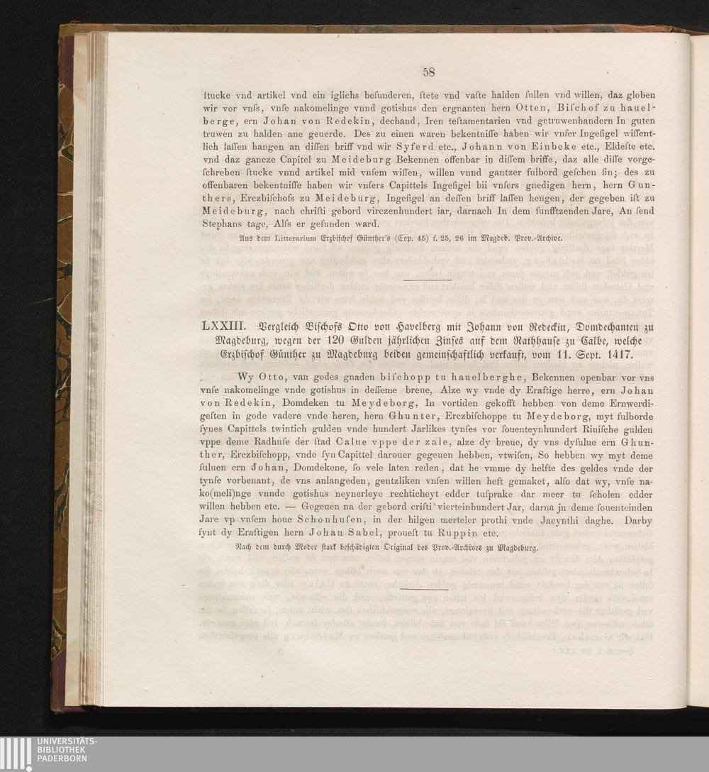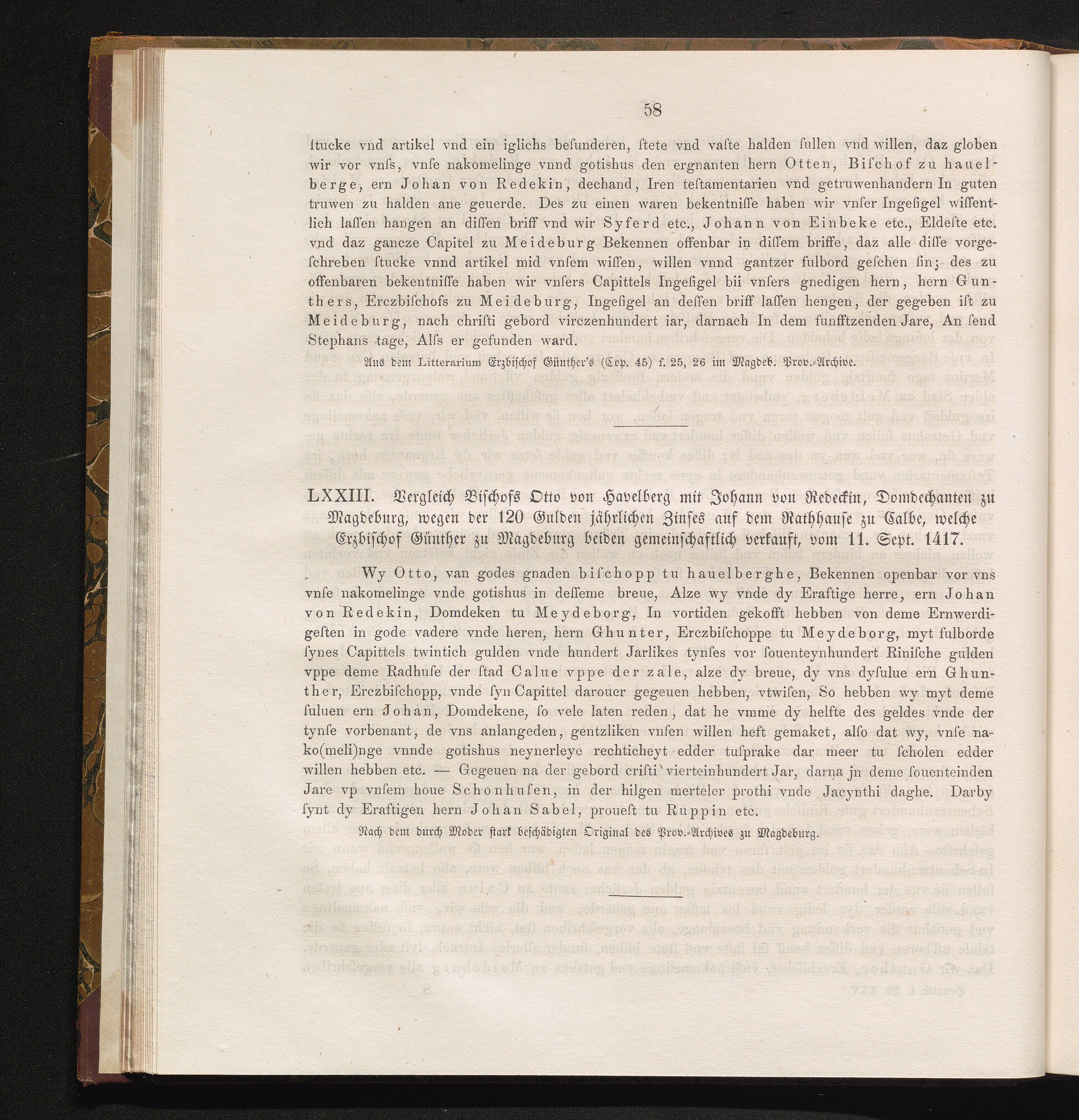 LXXIII. Vergleich Bischofs Otto von Havelberg mit Johann von Redeckin, Domdechanten[...]