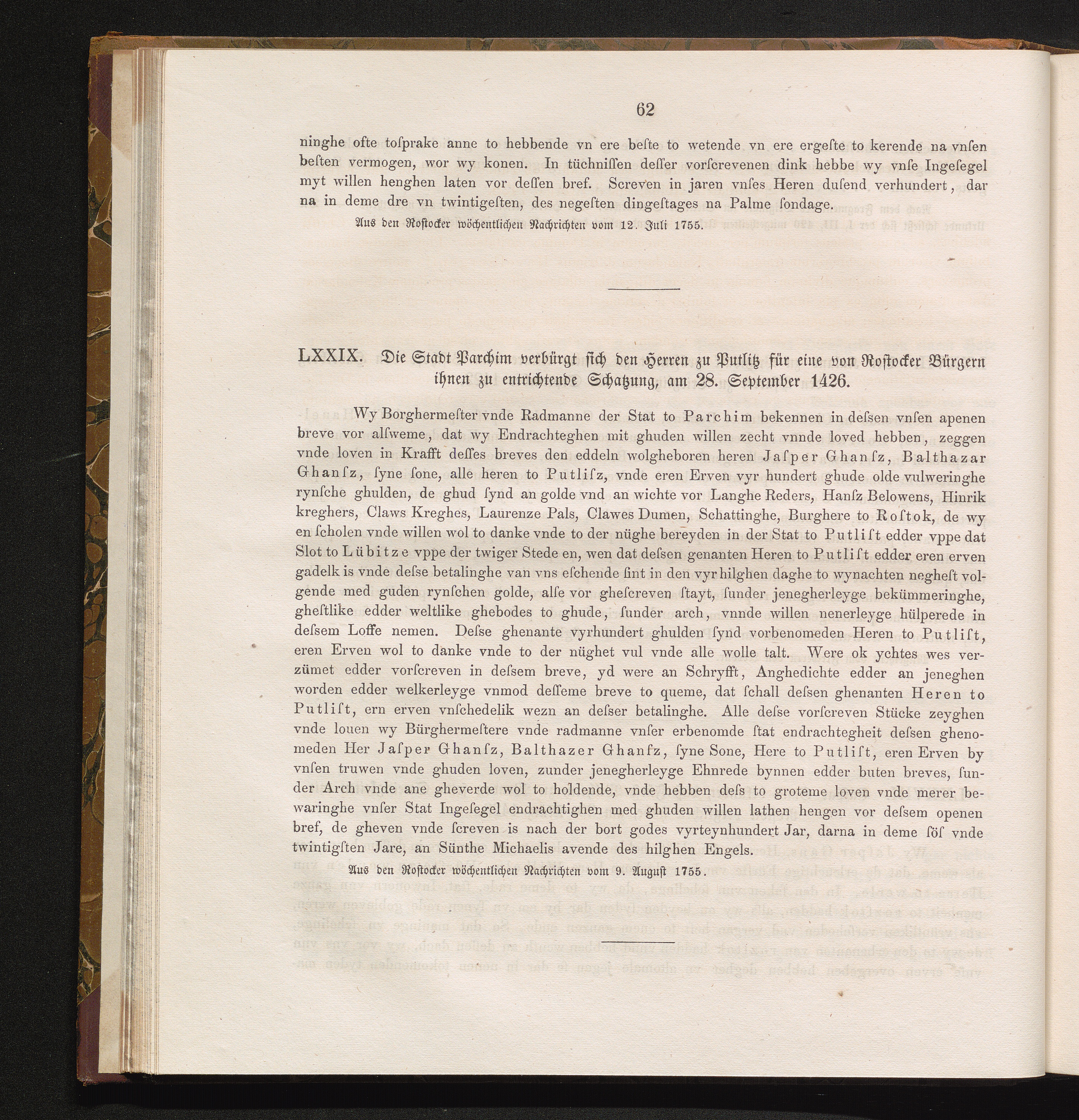 LXXIX. Die Stadt Parchim verbürgt sich den Herren zu Putlitz für eine von Rostocker[...]