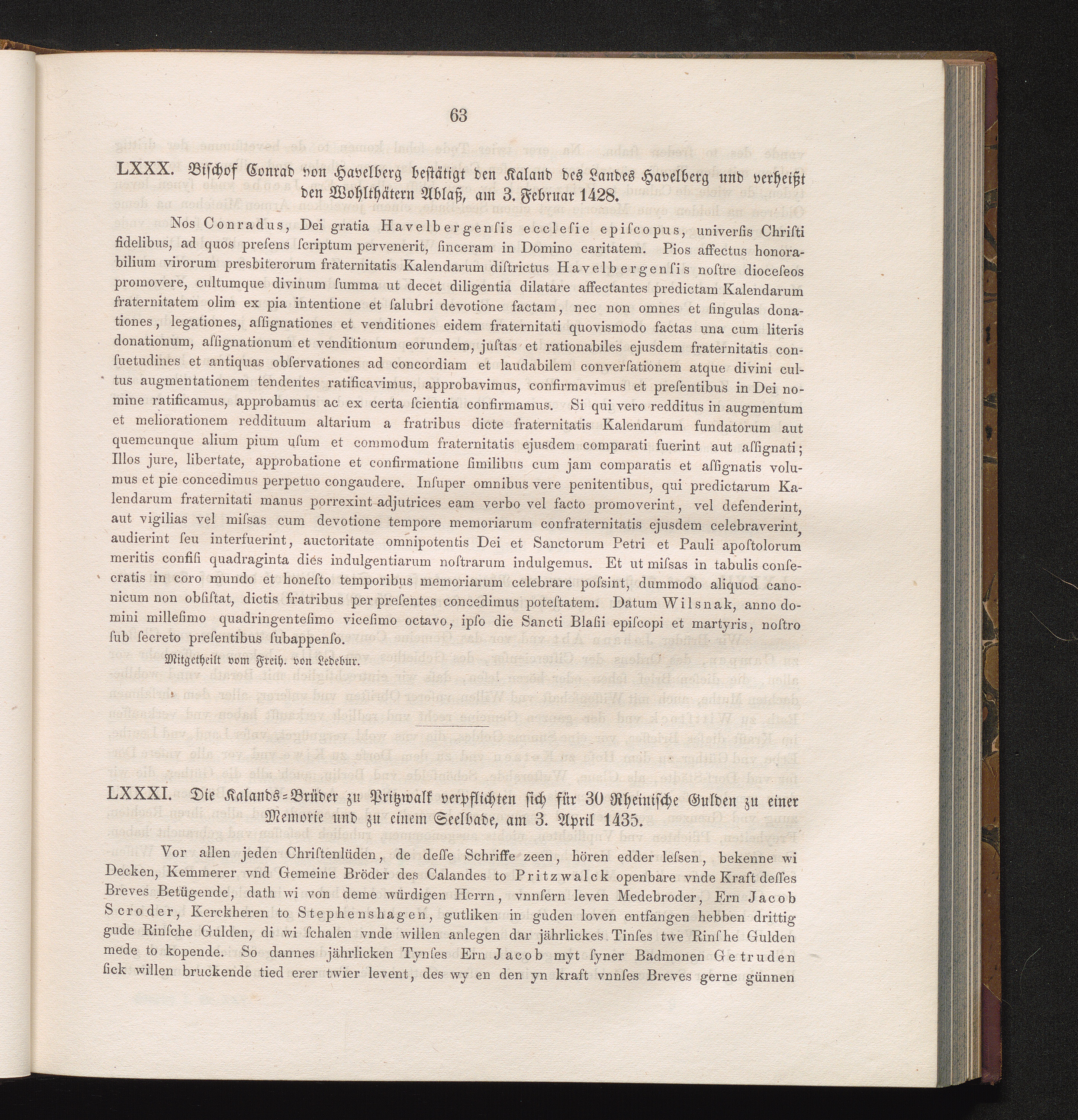 LXXX. Bischof Conrad von Havelberg bestätigt den Kaland des Landes Havelberg und[...]