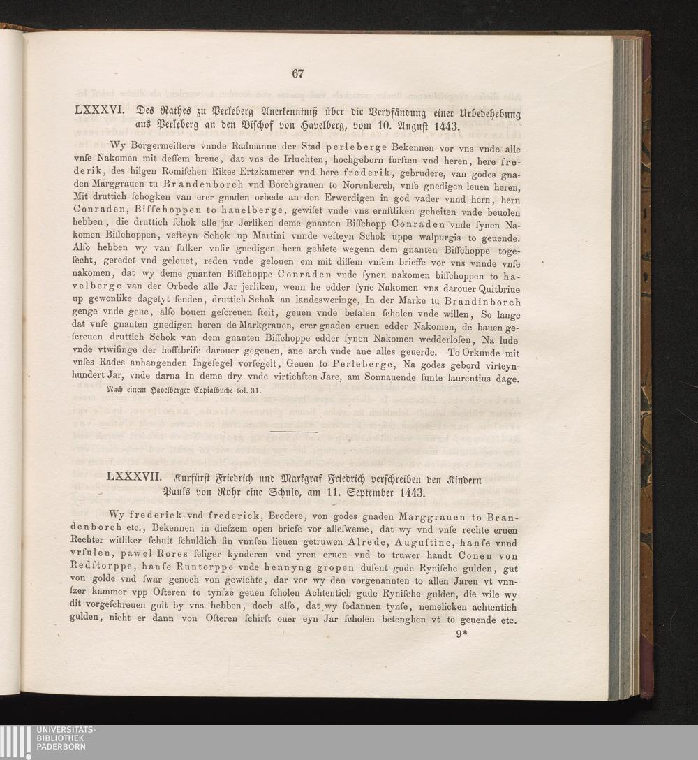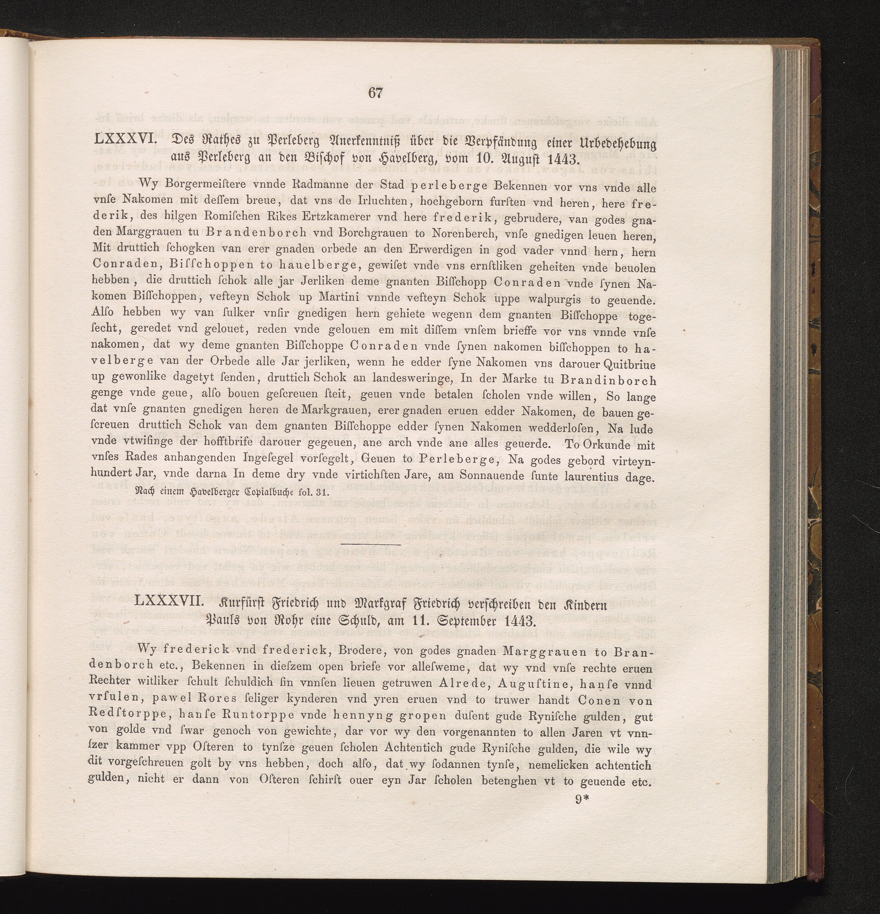 LXXXVI. Des Rathes zu Perleberg Anerkenntiß über die Verpfändung eine Urbedehebung[...]