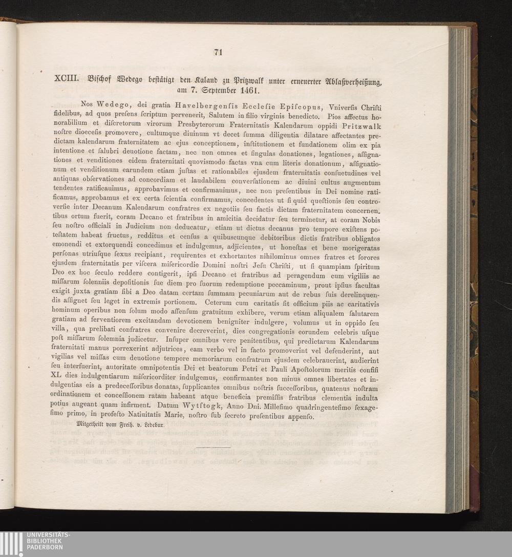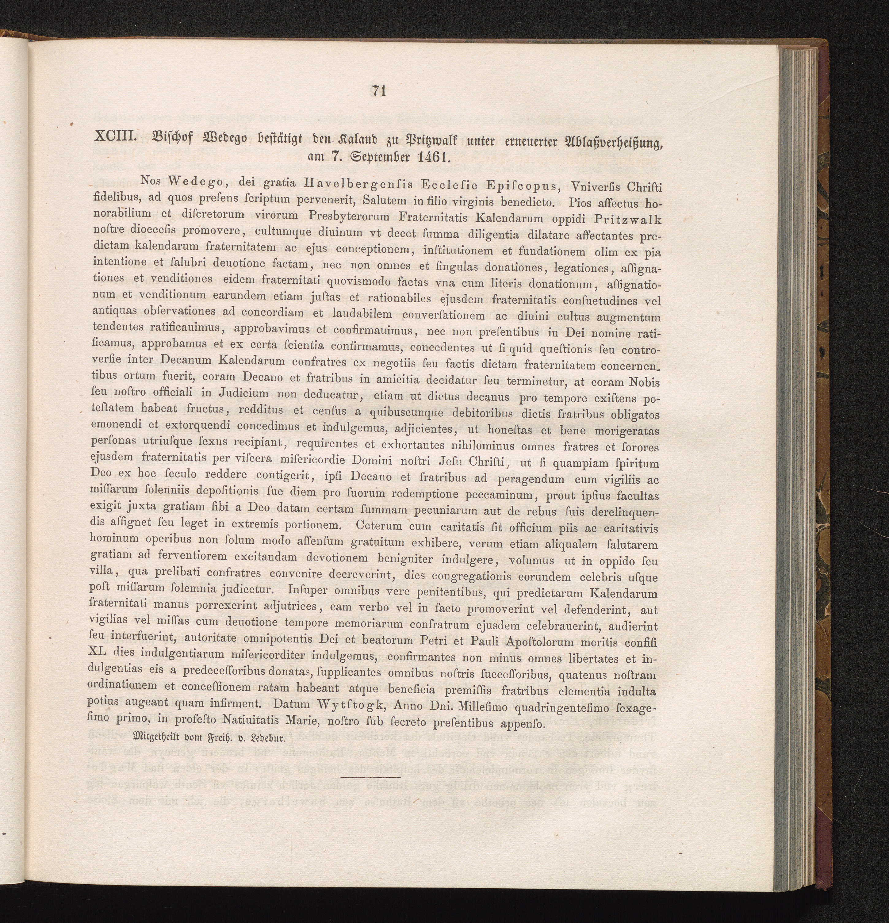 XCIII. Bischof Wedego bestätigt den Kaland zu Pritzwalk unter erneuerter Ablaßverheißung,[...]