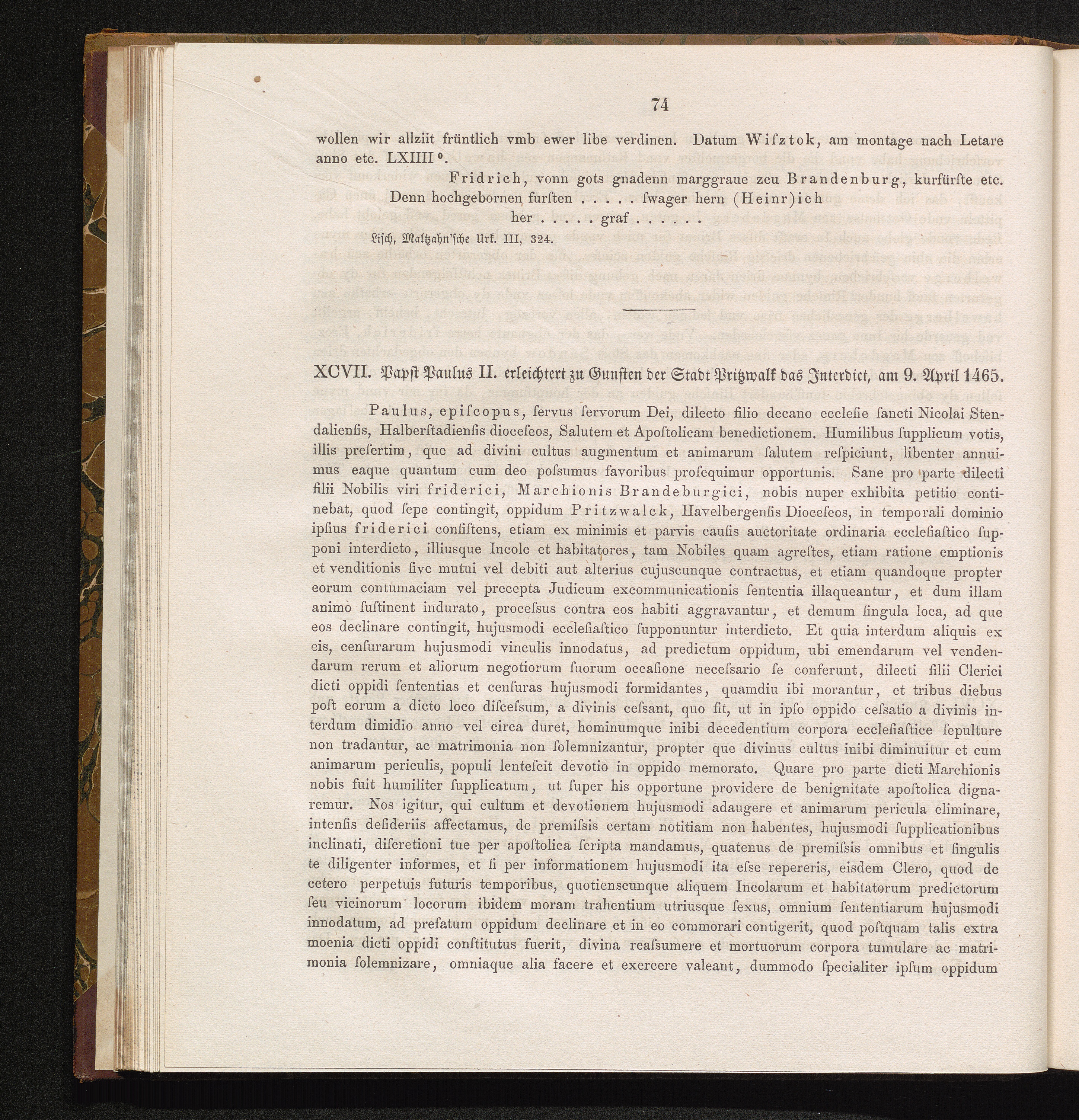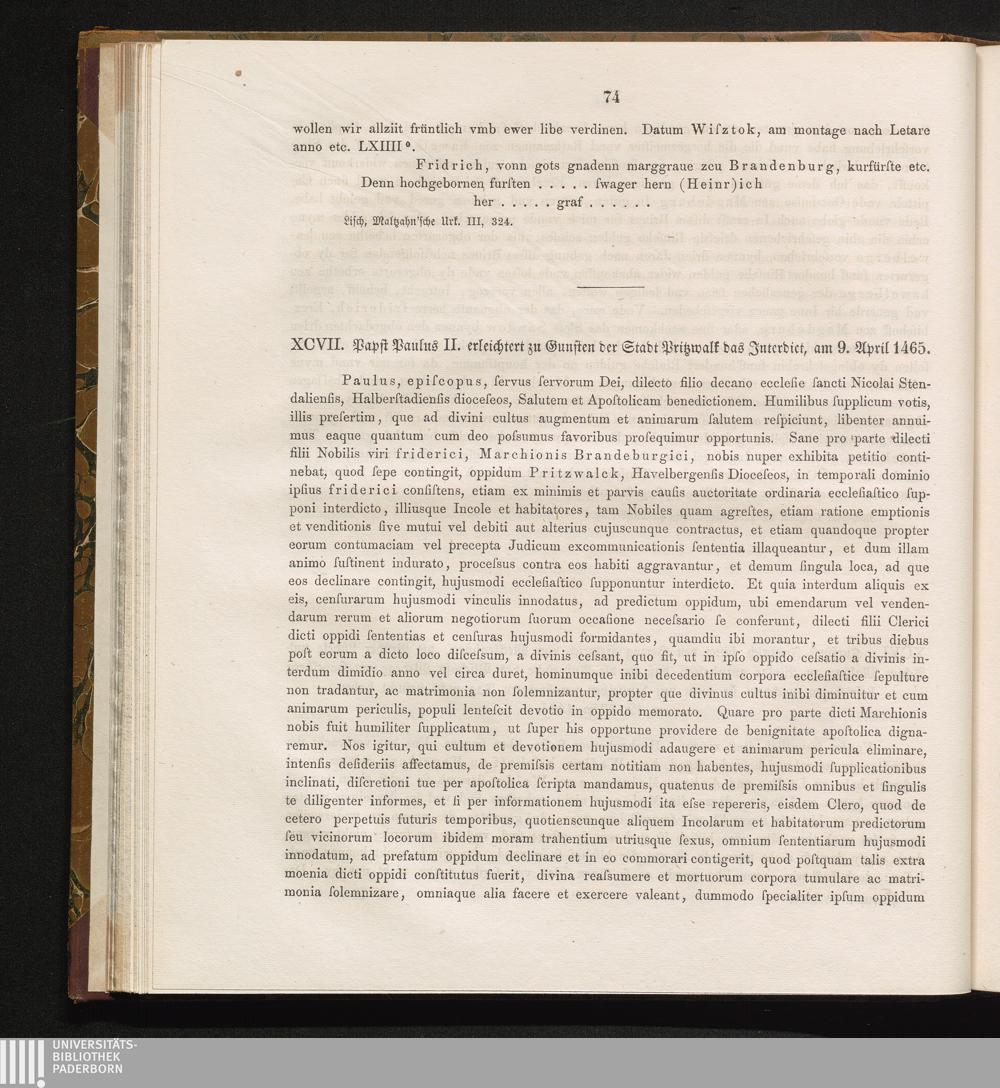XCVII. Papst Paulus erleichtert zu Gunsten der Stadt Pritzwalk das Jnterdict, am[...]
